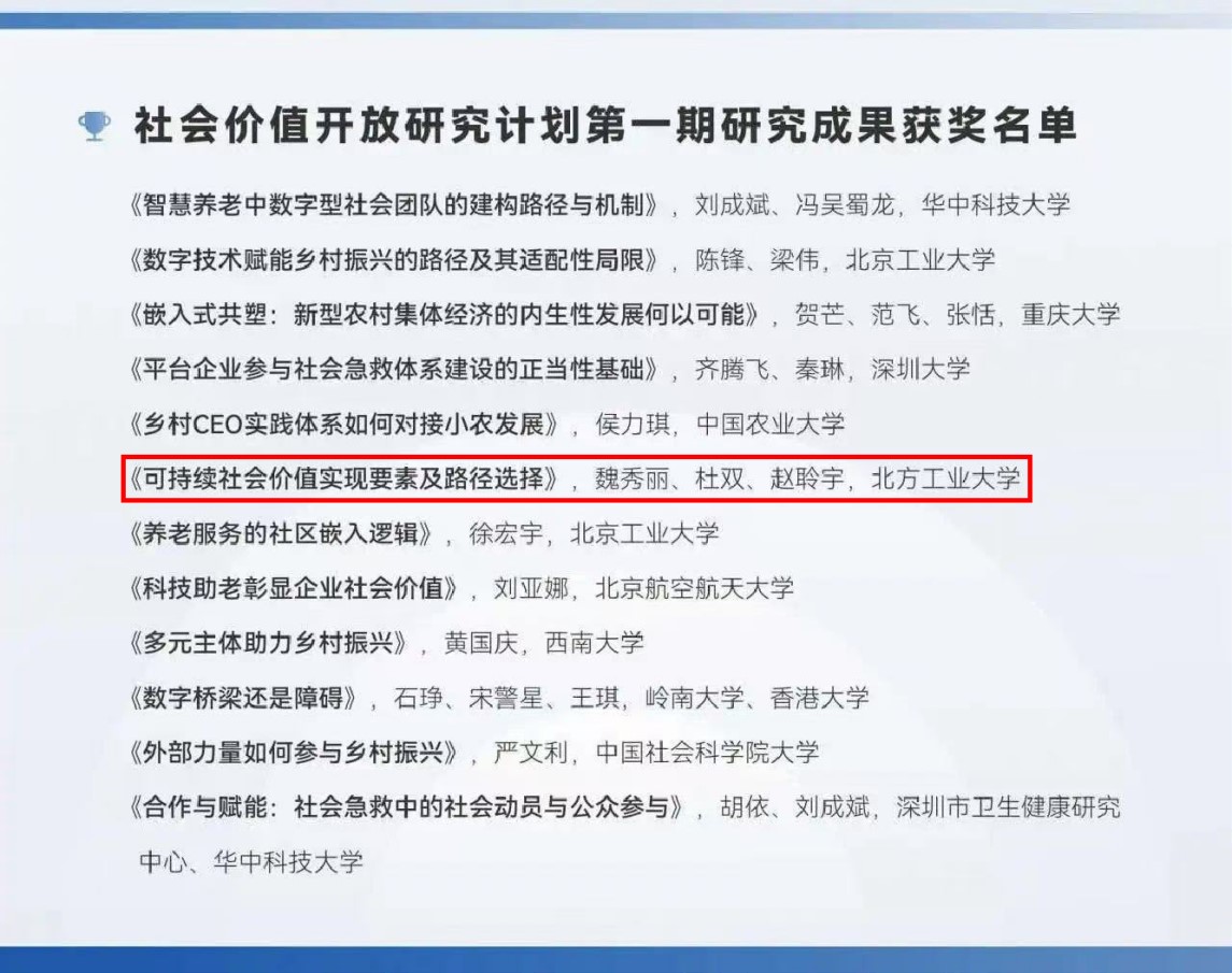 此次获奖不仅是对经管公司魏秀丽副教授团队研究成果的认可,也是对yl6809永利集团在社会责任和可持续发展研究领域实力的肯定,为推动企业可持续社会价值生态的构建贡献了北方工大的智慧和力量。