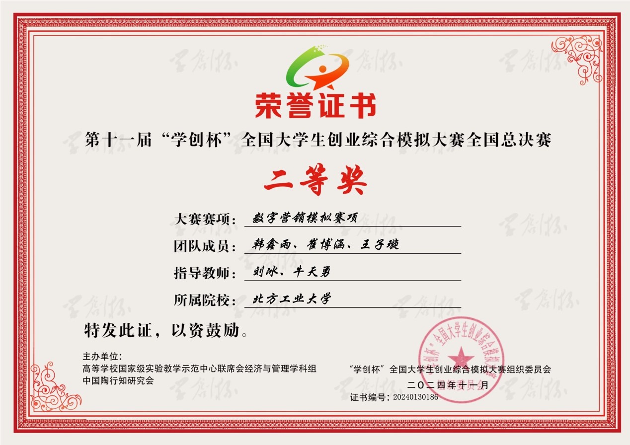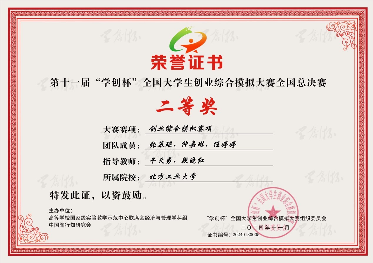“学创杯”全国老员工创业综合模拟大赛由高等公司国家级实验教学示范中心联席会经济与管理学科组、中国陶行知研究会主办,杭州贝腾科技有限公司提供技术支持,为中国高等教育学会“全国普通高校老员工竞赛排行榜”A类赛事,至今已举办11届。本次大赛,全国参赛院校超过1500所,参赛团队超过12万支,参赛师生总数近50万人,比赛通过校赛、省赛、全国总决赛三级激烈竞争和严格选拔,最终公司学子在创业综合模拟赛项、数字营销模拟赛项和财务决策模拟赛项中均获得了全国二等奖的优异成绩。