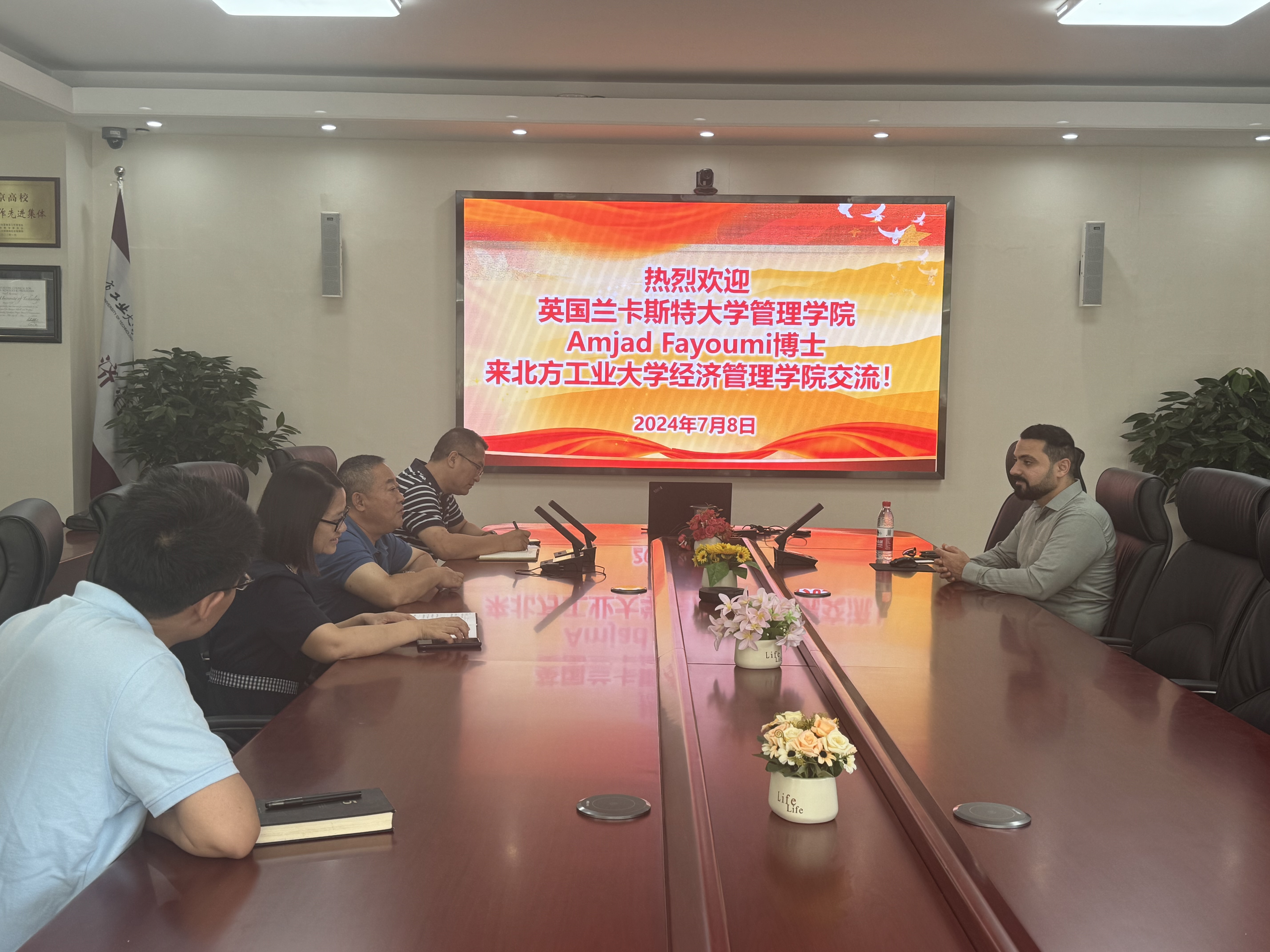 2024年7月8日上午,英国兰卡斯特大学管理公司Amjad Fayoumi博士到yl6809永利进行交流,公司经理赵继新、副经理孙强、副经理蒋贵凰及教师代表王学成博士参加了交流。