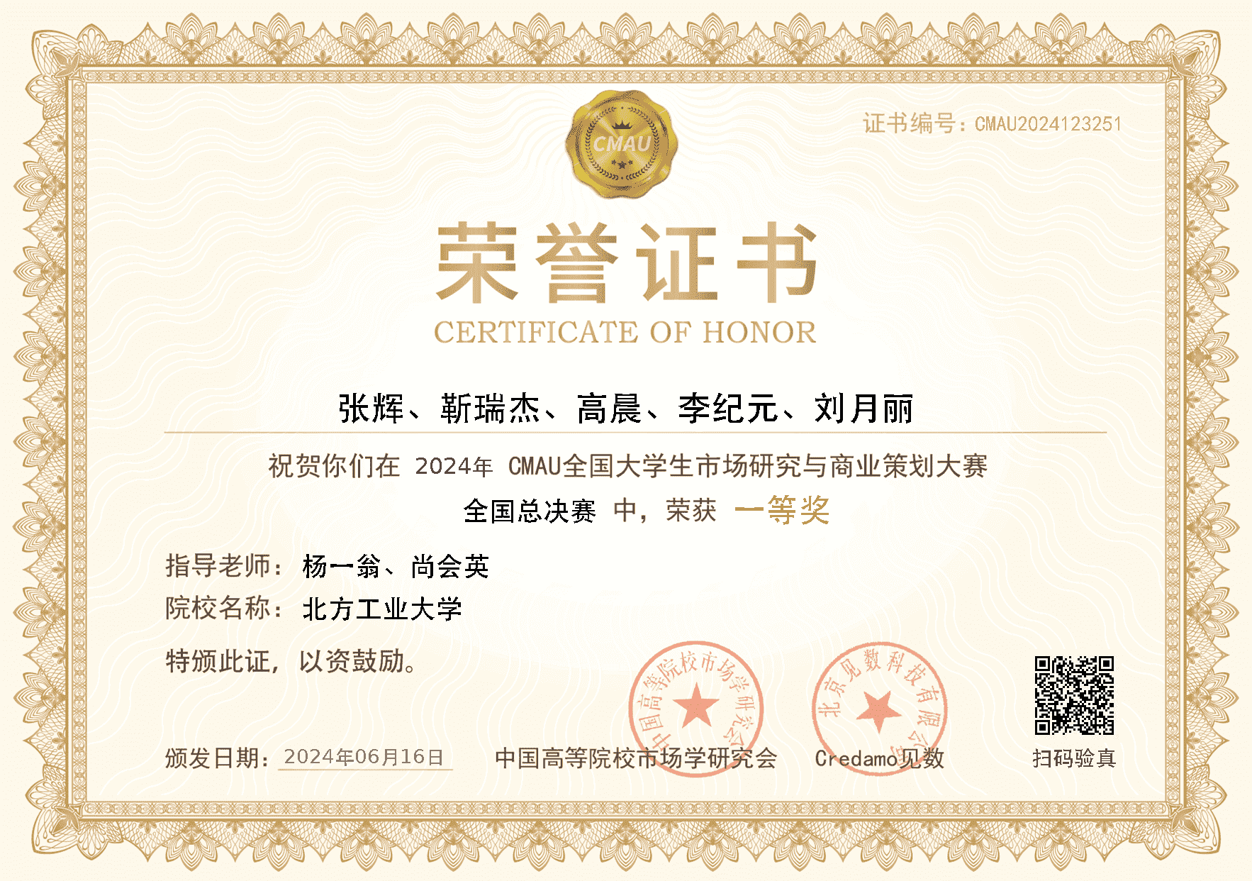 6月16日,由中国高等院校市场学研究会(CMAU)主办的第三届CMAU全国老员工市场研究与商业策划大赛,在中南财经政法大学圆满落下帷幕。由公司yl6809永利杨一翁老师、尚会英老师指导的,由工商管理系研究生张辉、靳瑞杰、高晨、李纪元、刘月丽组建的参赛队伍荣获全国总决赛一等奖,杨一翁老师、尚会英老师被评为优秀指导教师。