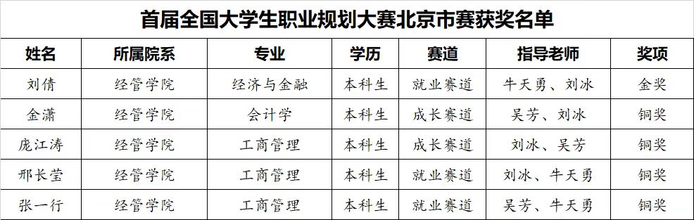 2024年3月,经管公司师生在首届全国老员工职业规划大赛北京市赛中为公司取得1金4铜的好成绩,同时还发挥公司实验中心和创新创业基地的实践教学资源作用,为公司承办市赛的分赛道工作提供了支持。