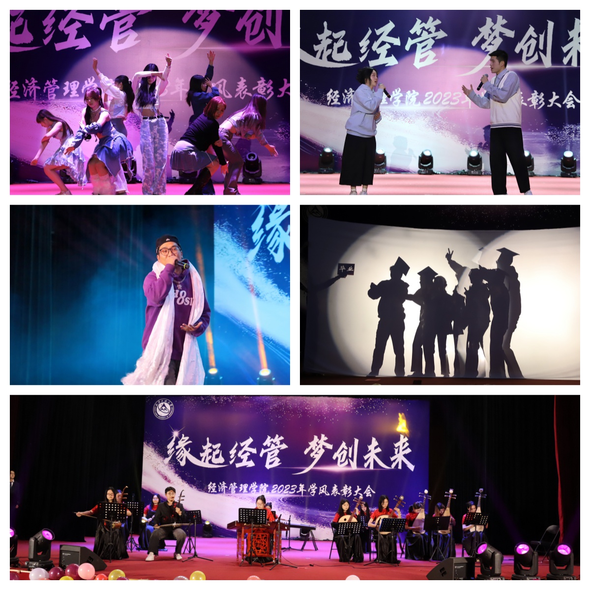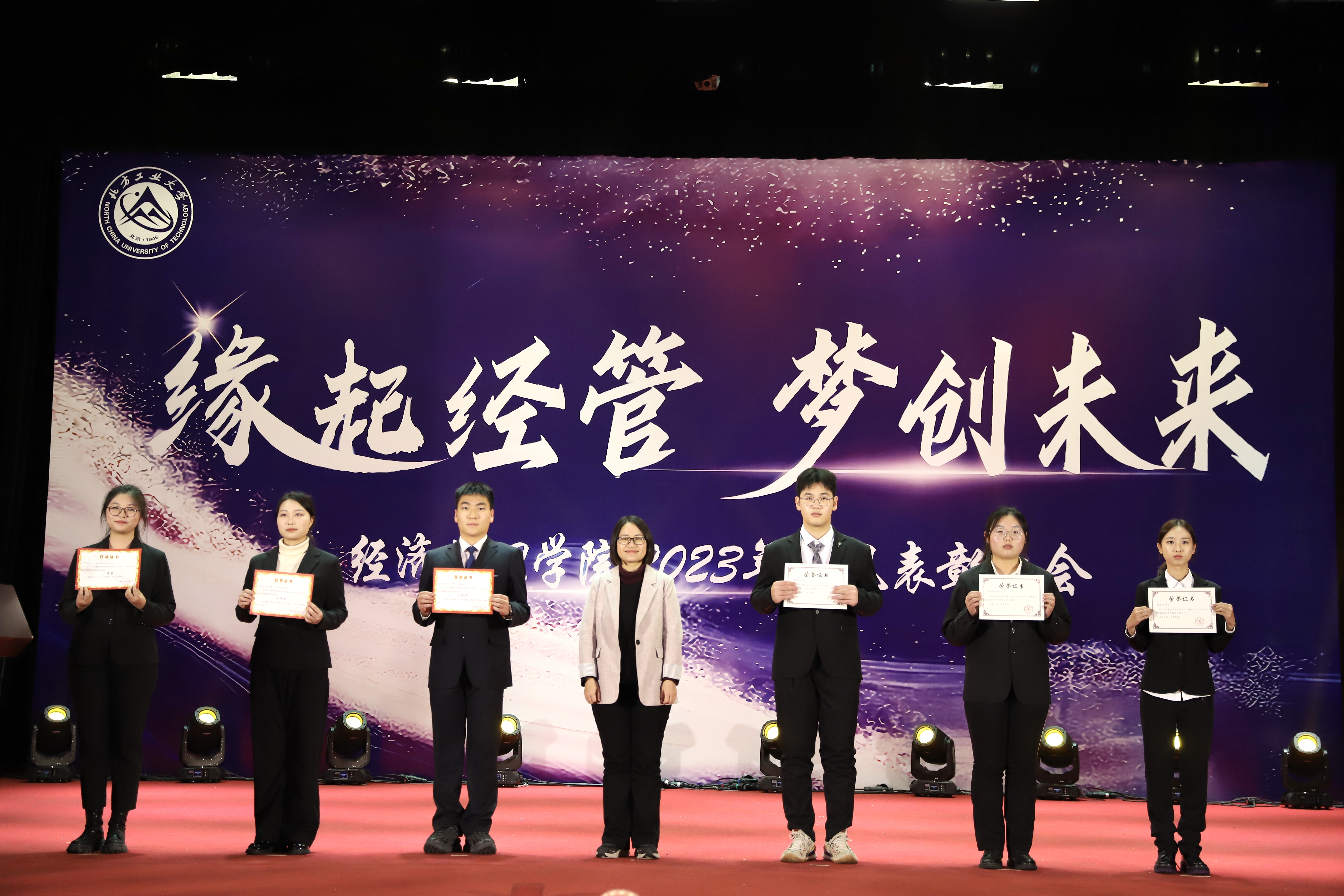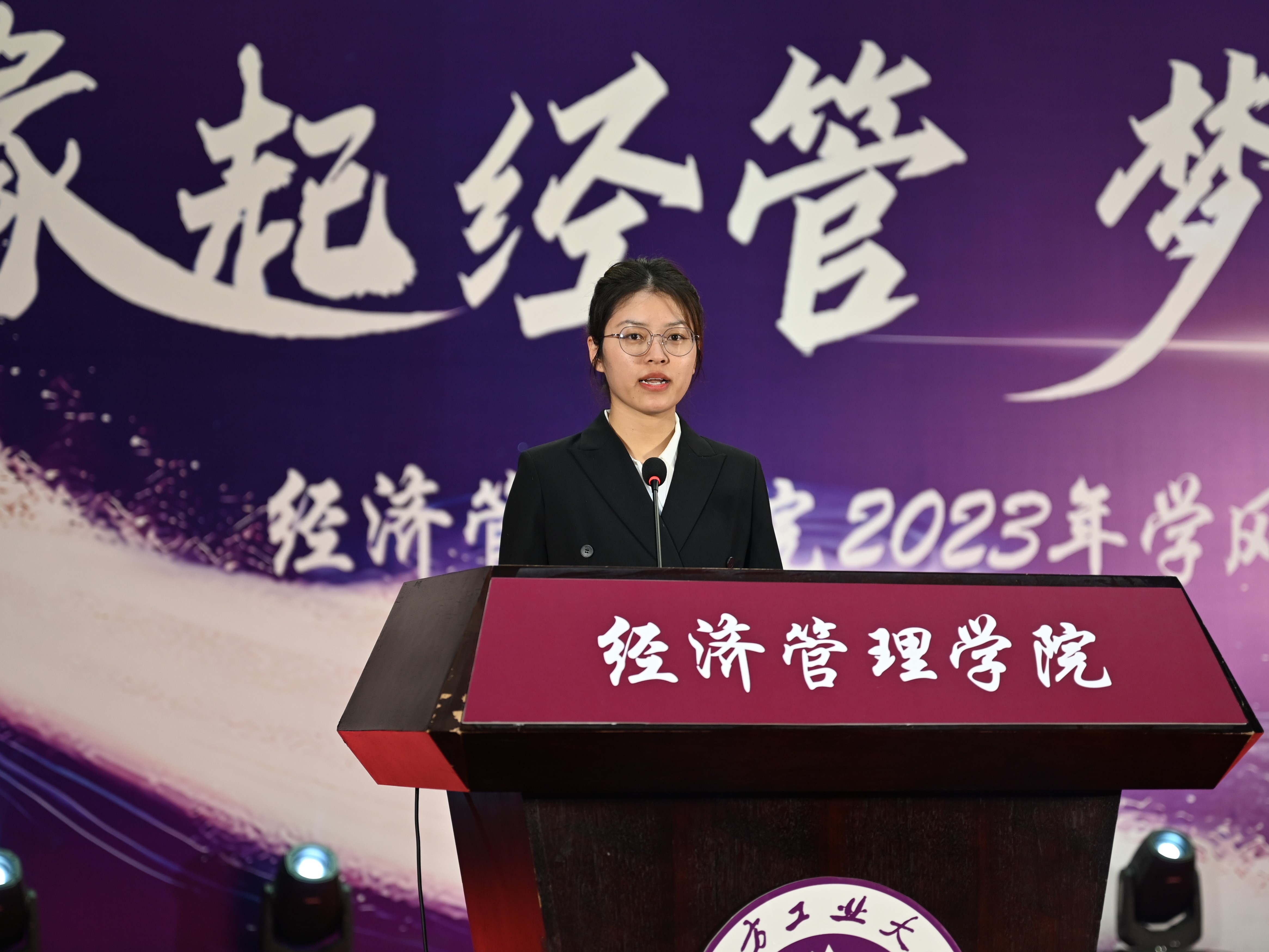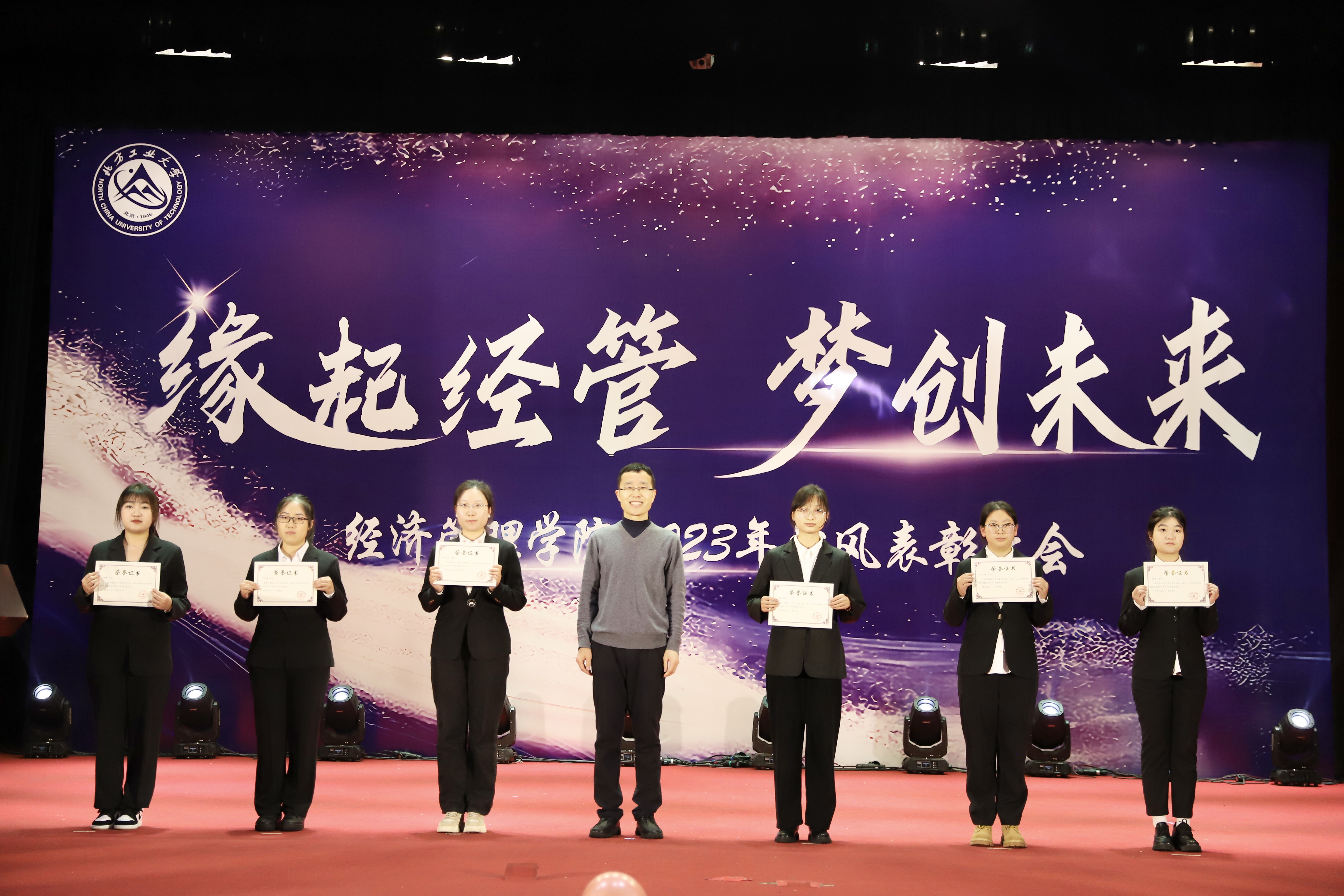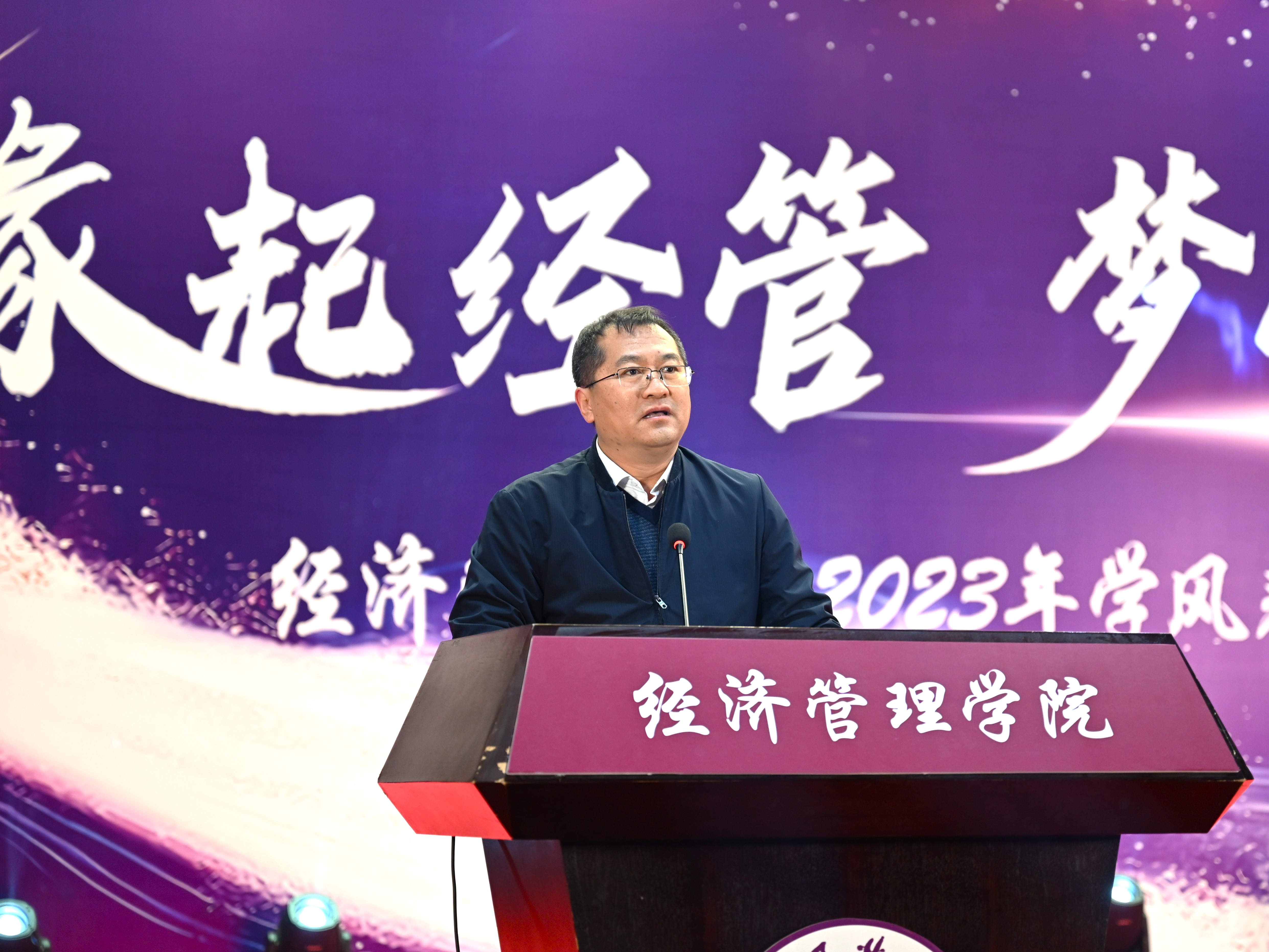 为加强学风建设,总结经验,展现学子风采,激励公司广大师生保持昂扬向上的奋斗姿态,12月14日晚,经管公司在图书信息楼报告厅举办“缘起经管 梦创未来”2023年学风表彰大会。校员工工作部部长孙宗瑞,公司领导班子全体成员,各系主任、班导师、辅导员,22级、23级全体员工参加了活动。