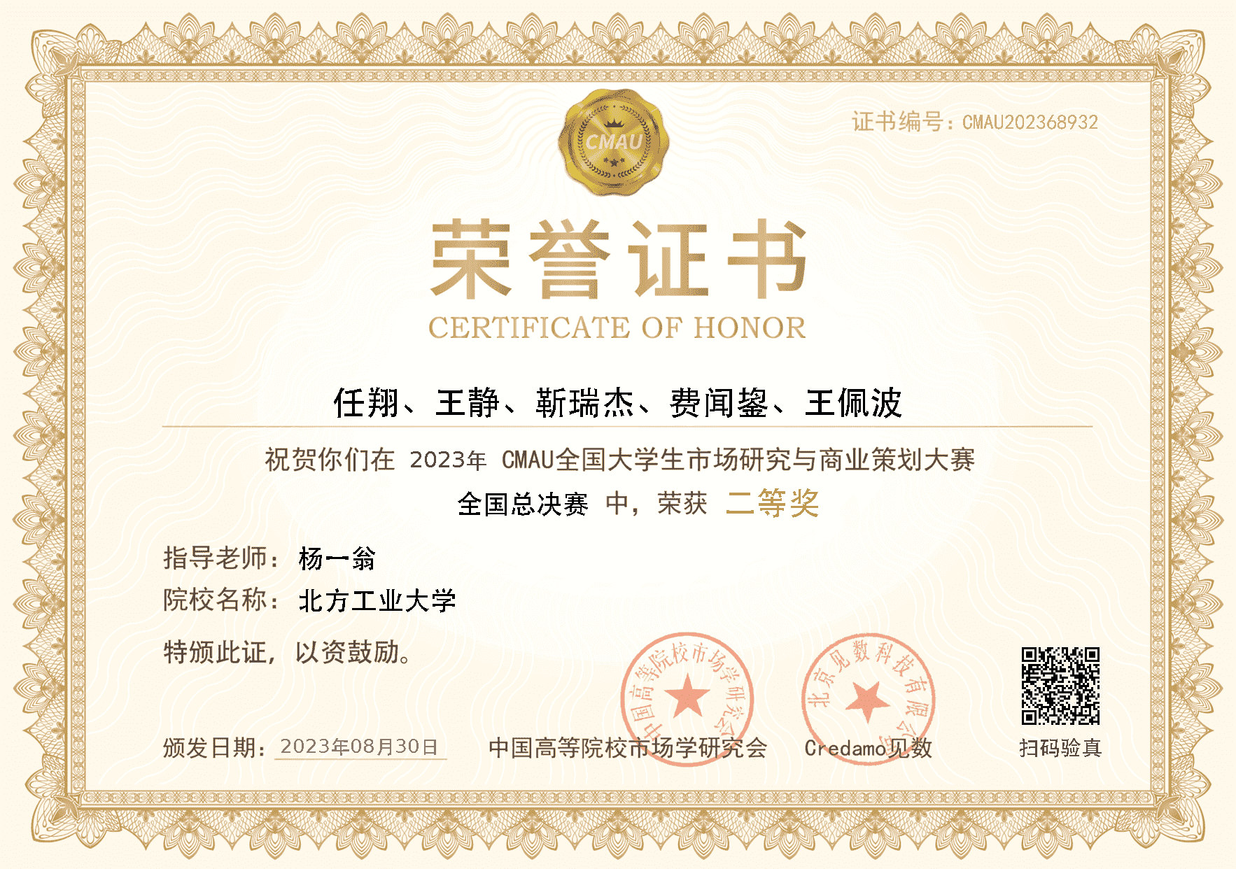 8月31日,由中国高等院校市场学研究会(CMAU)主办的第二届CMAU全国老员工市场研究与商业策划大赛,在东北大学圆满落下帷幕。公司yl6809永利杨一翁老师指导的,由工商管理系2022级研究生任翔、王静、靳瑞杰、费闻鋆和王佩波组建的参赛队荣获全国总决赛二等奖,杨一翁老师被评为优秀指导教师。