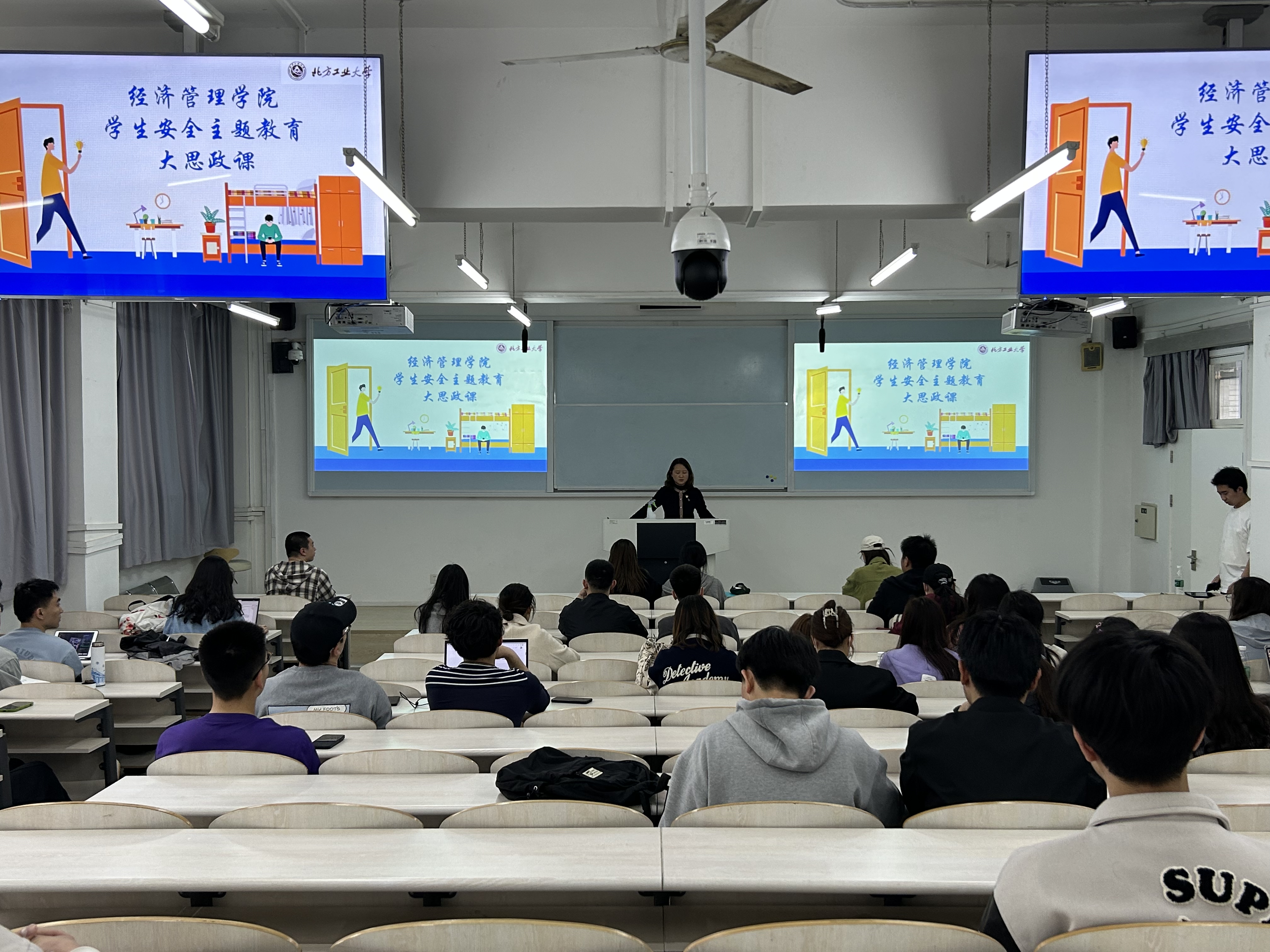 会上,王帏老师要求各班班长将本次安全主题教育“大思政课”的精神传达到班里每一个同学,切实提高安全意识,共同维护校园安全稳定。经管公司从4月13日以来,辅导员、班导师、团学骨干形成合力,已在全院员工中开展两次员工安全教育主题活动,在金鼎公寓和校内公寓完成了员工自查、统一检查、整改督查的宿舍安全检查工作。