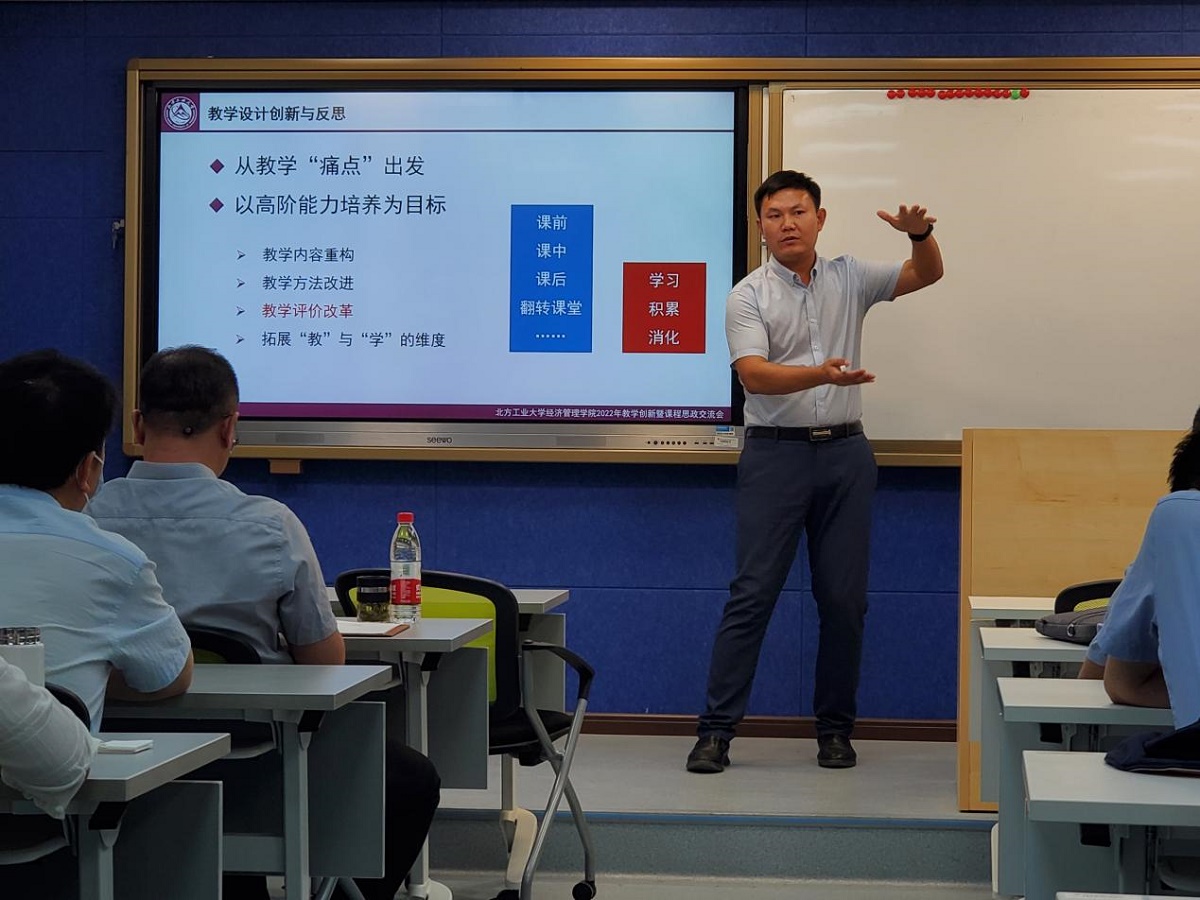 北京市高校教师教学创新大赛正高组一等奖、全国赛并喜获大赛三等奖获得者邢志强老师结合自身参加教学创新大赛参赛的经历,分享了创新成果材料,为青年教师参加比赛指明了道路。他建议,要注重教学活动和方法的重构,吸引员工的注意力,实现员工全时浸入参与。邢老师指出青年教师要提前准备、主动思考、合理规划,才能在大赛中取得优异成绩。