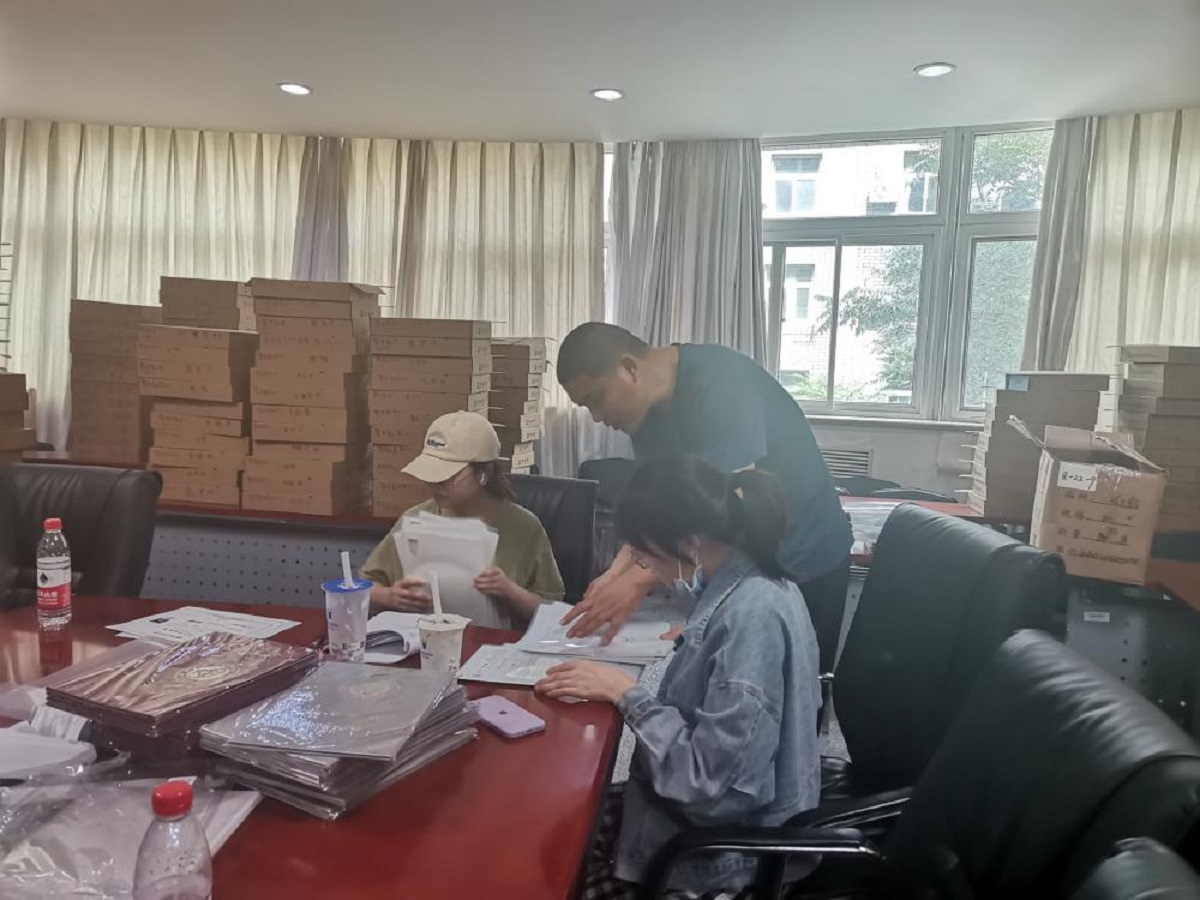 在材料整理打包过程中,公司各位老师纷纷化身“打包员”、“快递员”,分工协作、耐心审核、细心整理、精心打包......用最有力的行动、最真挚的情感、最质朴的付出为全体毕业生提供暖心周到的服务,助力这场特殊的“毕业寄”,努力让员工感受到“家”一样的温暖。