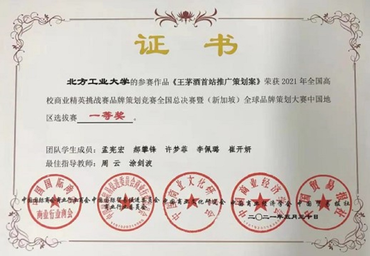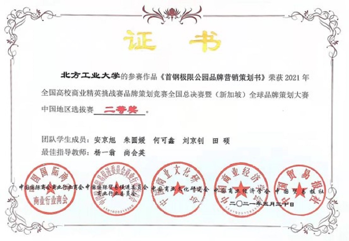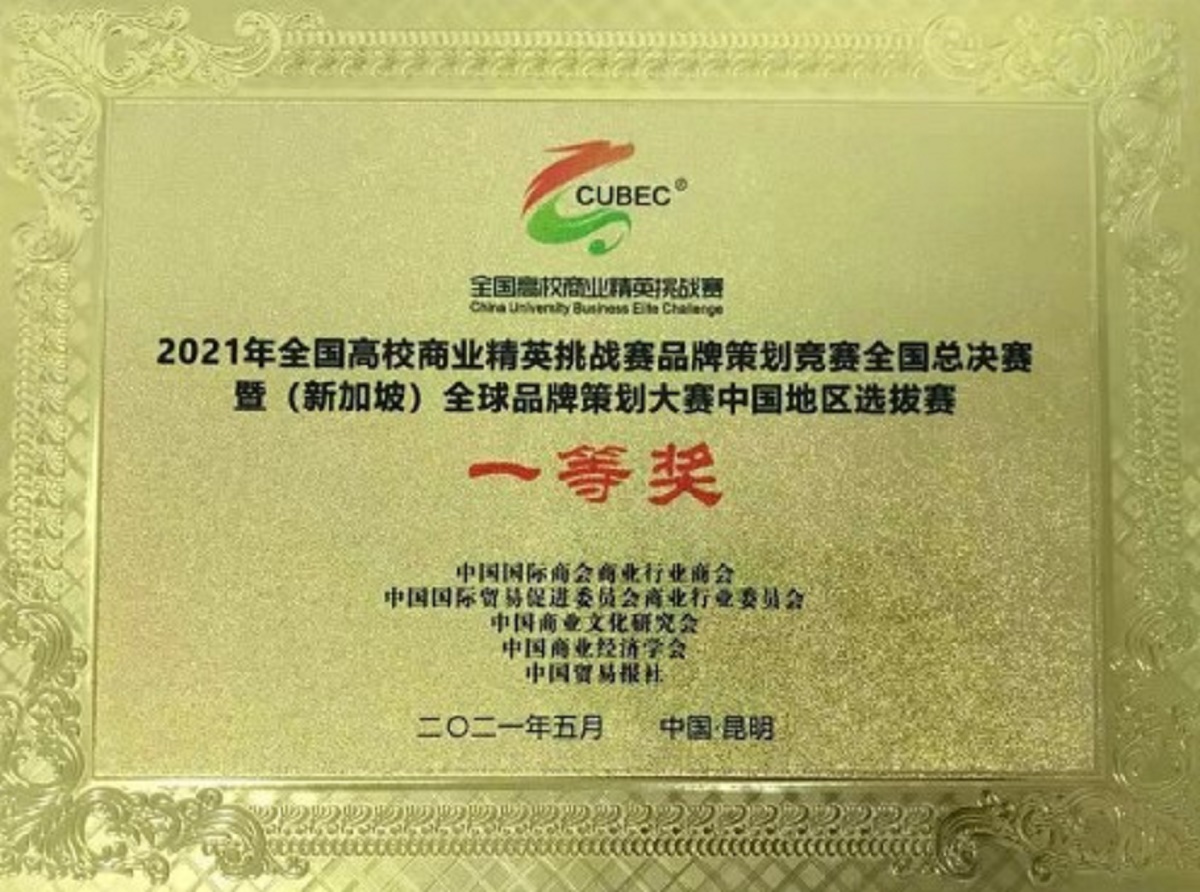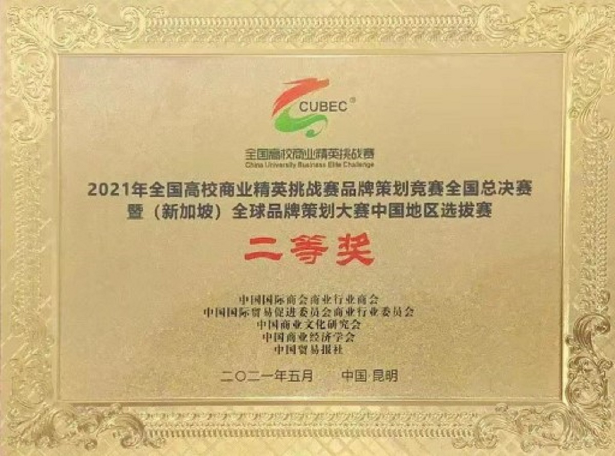 2021年5月28日至30日,由中国国际商会商业行业商会、中国国际贸易促进委员会商业行业委员会、中国商业文化研究会、中国商业经济学会等单位联合主办的全球高校商业精英挑战赛品牌策划管理竞赛及(新加坡)全球品牌策划管理大赛全国总决赛于云南昆明举行,本次比赛的院校覆盖中国24个省,共有689支队伍参赛,其中204支代表队入围全国总决赛。