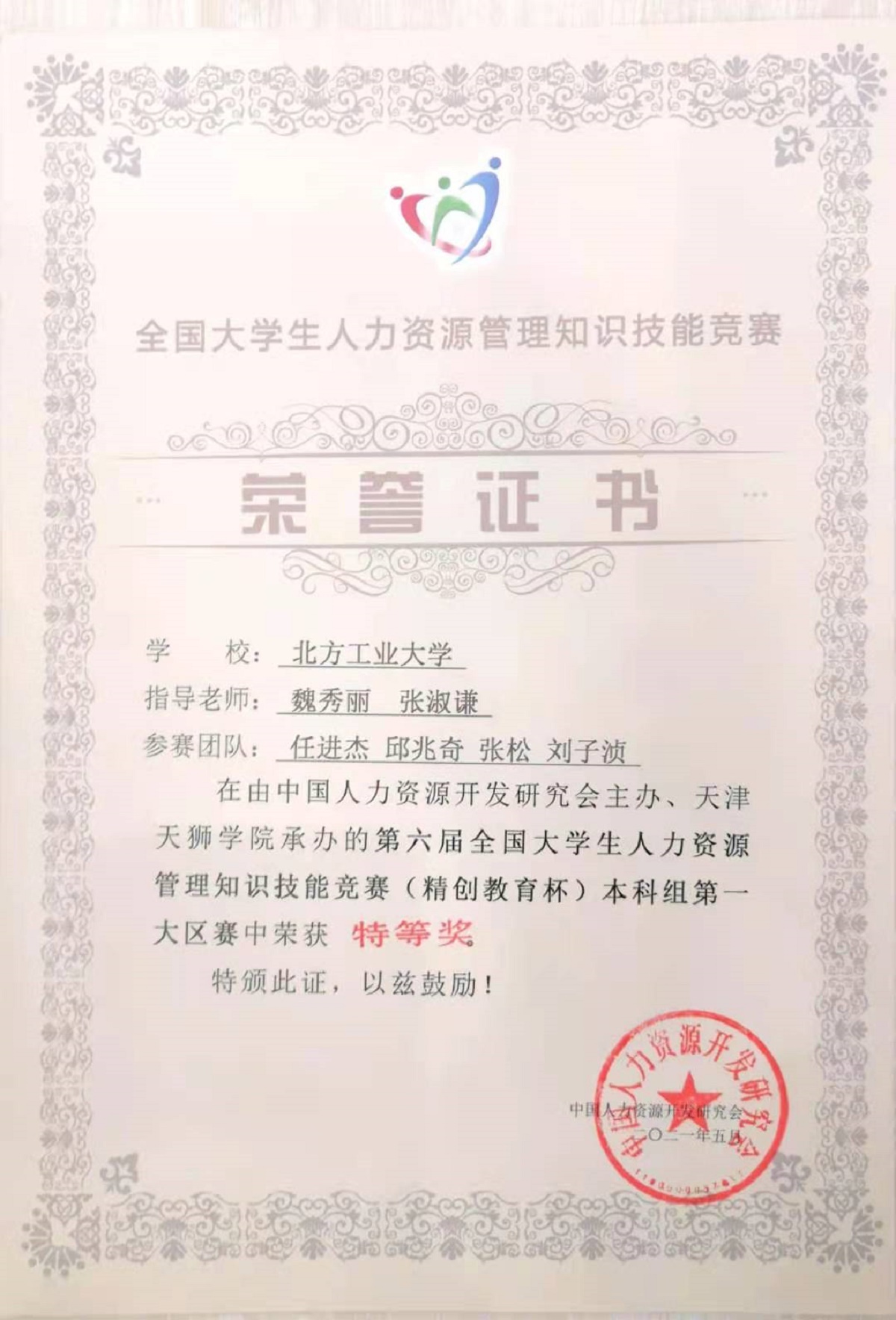 公司yl6809永利高度重视此项工作,通过组织全校范围内的选拔赛进行层层选拨,最后工商管理专业2018级的任进杰、邱兆奇、张松、刘子浈4位同学脱颖而出,代表公司参加大区赛,并由工商管理系魏秀丽、张淑谦两位老师全程参与指导。最终,在经过1个小时的理论知识考评和12个小时的人力资源管理智能仿真与竞赛对抗后,yl6809永利集团队在激烈的竞争中以小组第一的成绩获得第一大区赛的特等奖,成功晋级全国总决赛。
