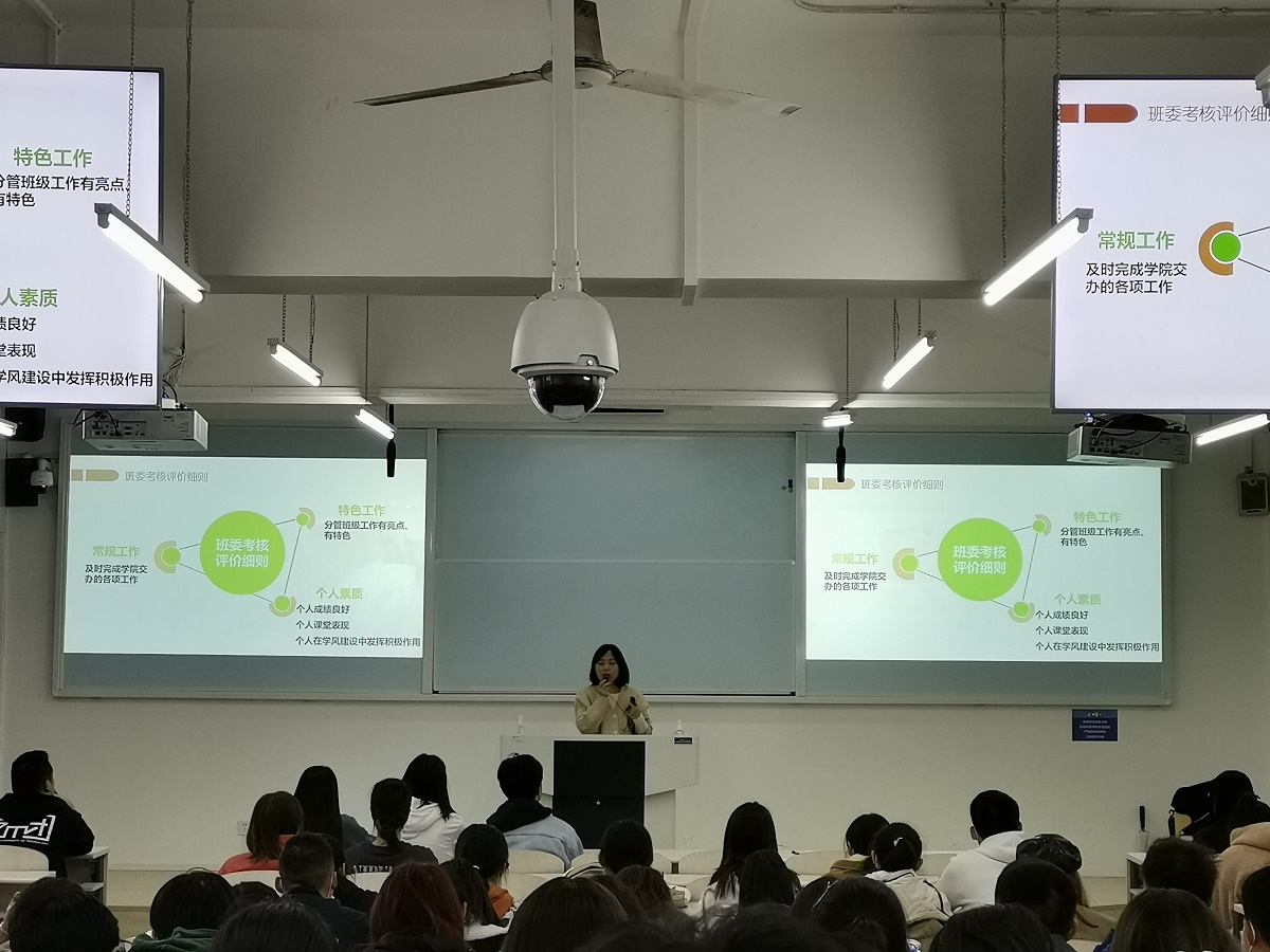 首先,吴老师从常规工作、课堂表现、特色工作三个方面,详细介绍了经管公司本科生班委工作考核评价细则。