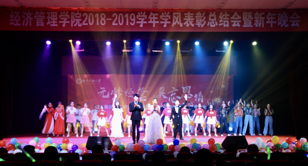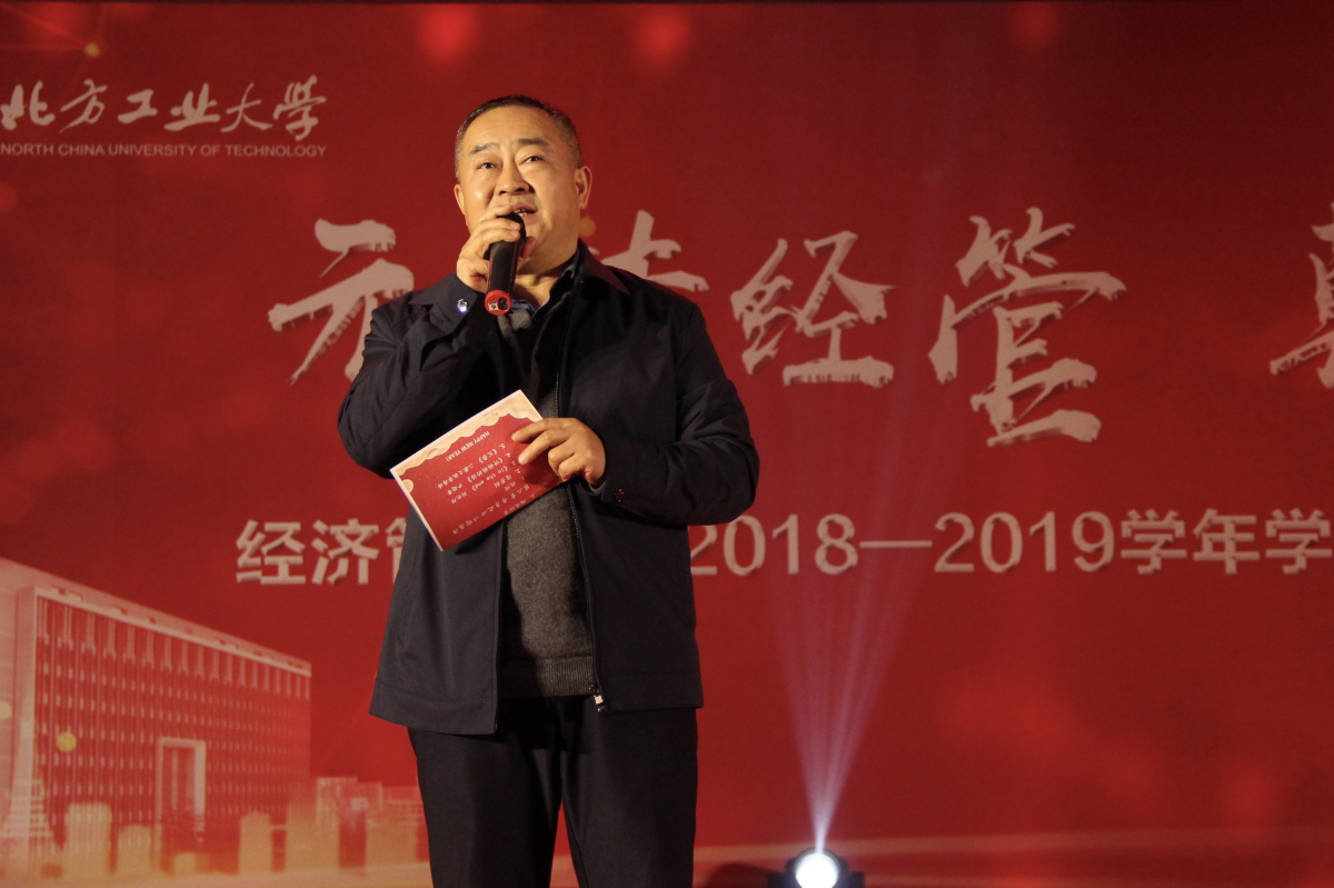 晚会现场,赵继新经理首先为同学们送上新年贺词,他肯定了公司全体师生在2019年中所取得的成绩,为大家积极参与国庆和冬奥相关活动所付出的努力表示感谢,为大家展现出的当代老员工奋发向上精神面貌点赞。在即将到来的2020年,赵经理希望同学们以“充实、奋斗、努力”作为关键词,以梦为马、砥砺前行、圆梦经管,努力成为各个领域中的最闪亮的星。