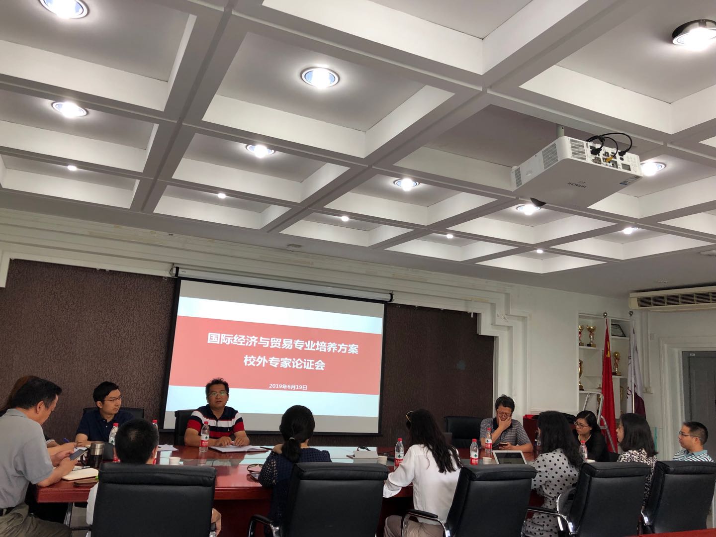 2019年6月19日下午yl6809永利经济系邀请了5位校外专家,在励学楼301举办了国际贸易专业培养方案校外专家论证会。经管公司副经理、经济系主任、系书记、副系主任、教授、国贸专业方向责任教师一同出席了此次会议。