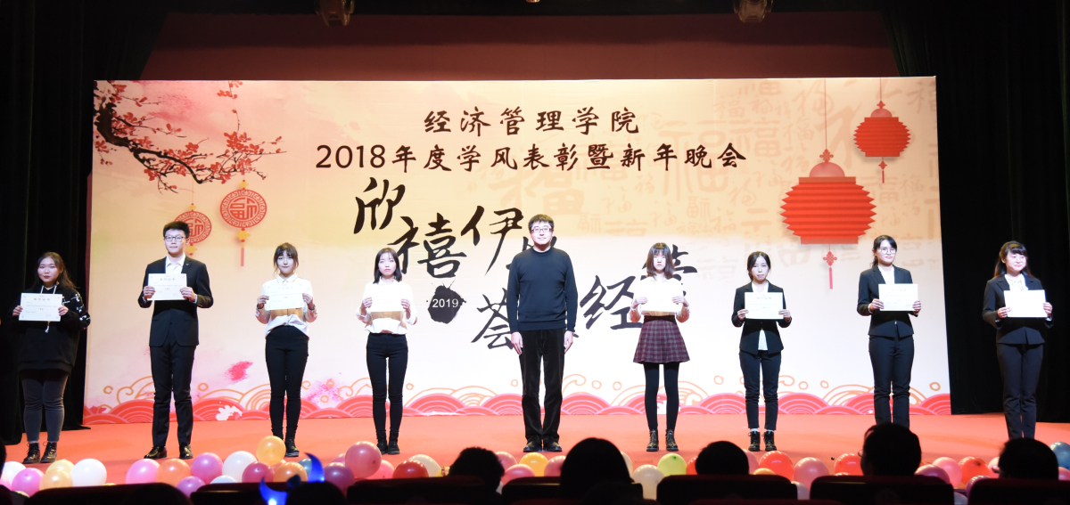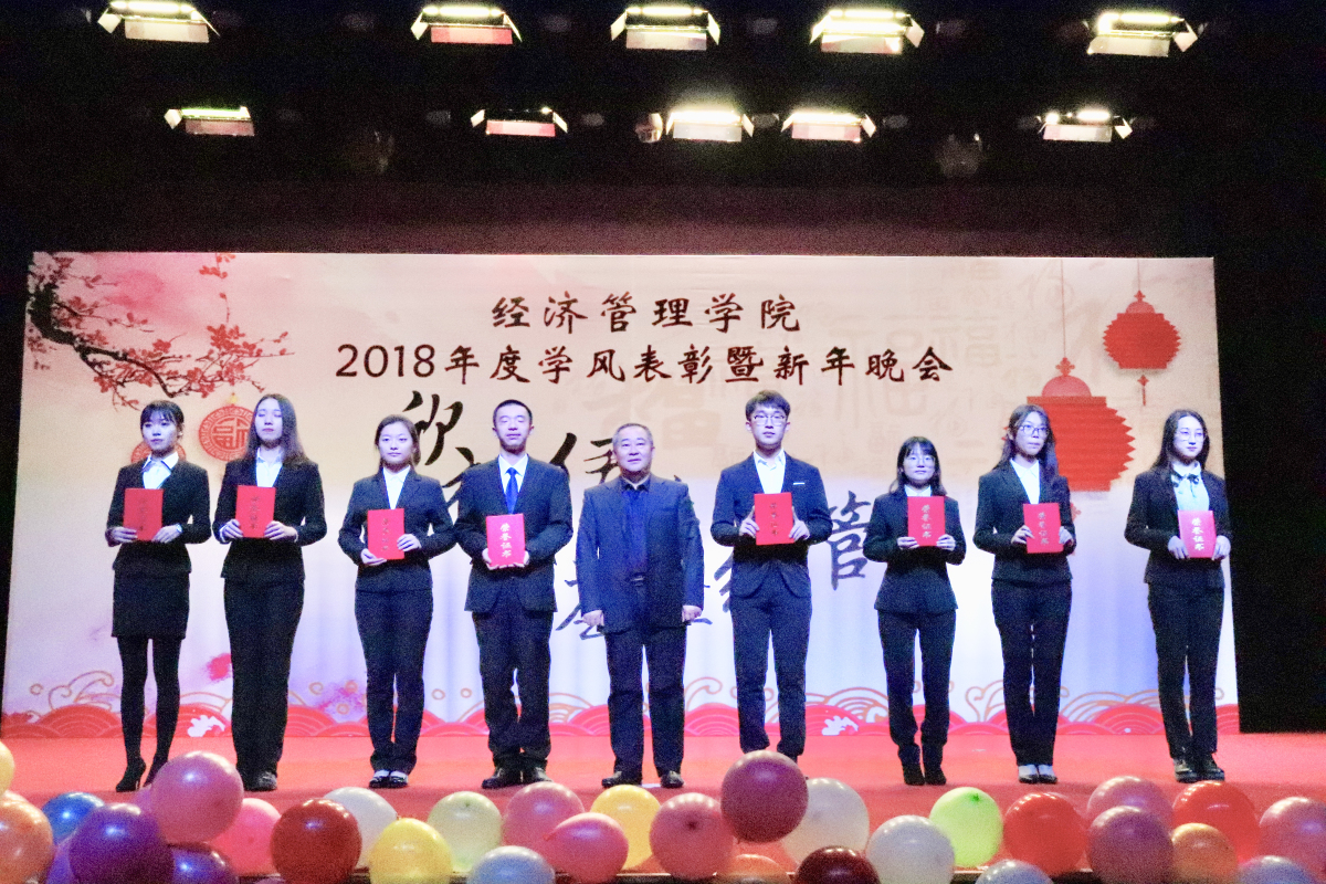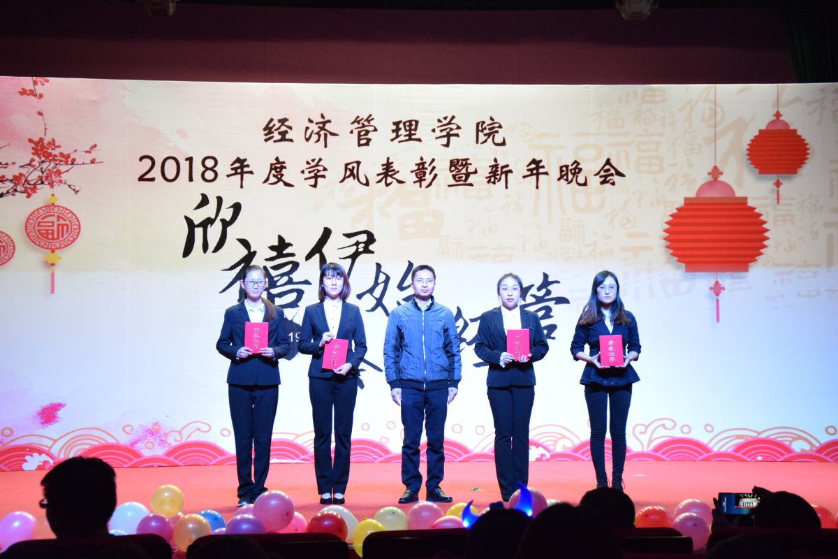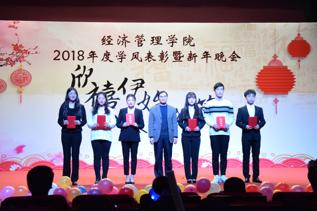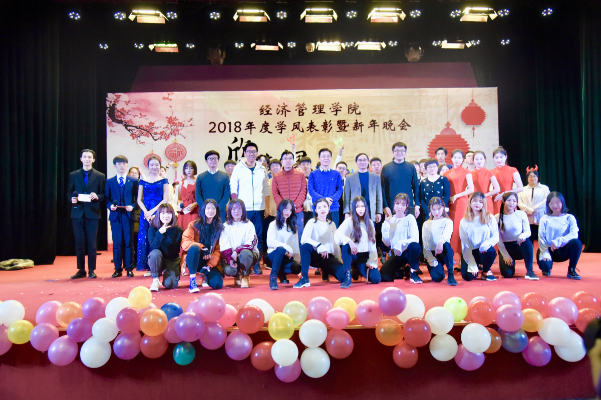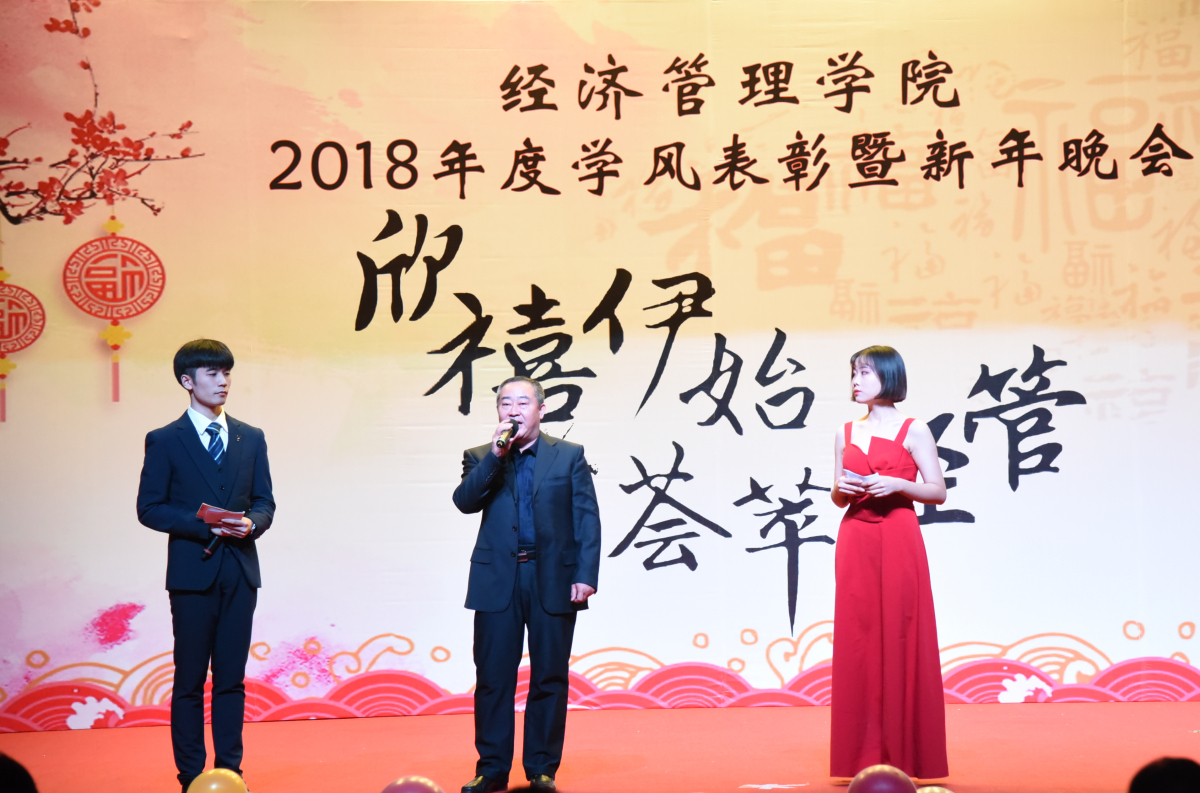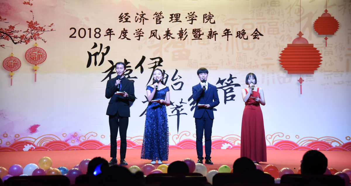 2018年12月18日晚,yl6809永利在图书馆报告厅举办“欣禧伊始 荟萃经管”2018年度学风表彰暨新年晚会。员工工作部部长高国伟、校团委书记何有华、员工工作部副部长赵帅、yl6809永利全体领导班子成员、各系主任、班导师、辅导员及600余名同学共同参加了本次晚会。