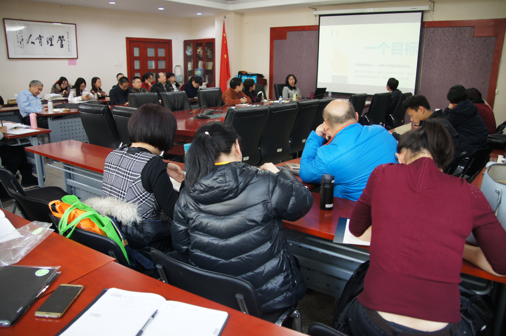 首先,陶晓波副经理对今年的本科教学审核评估工作目标任务安排等进行了解读,希望大家高度重视,认真落实,借评估机遇推动公司教学质量迈上新台阶。会议还邀请到对外经济贸易大学李芳副研究员为全院教师做了题为《审核评估促推大学回归教育本分》的报告。李芳副研究员从“促推大学回归教育本份”的目标讲起,以自己的亲身经历谈了如何认真抓好自评自建、如何精心准备主体文件。她强调了在宣传动员、全面建设与迎接评估三个阶段中公司工作的重心与路径,最后分享了自己的四点感悟。