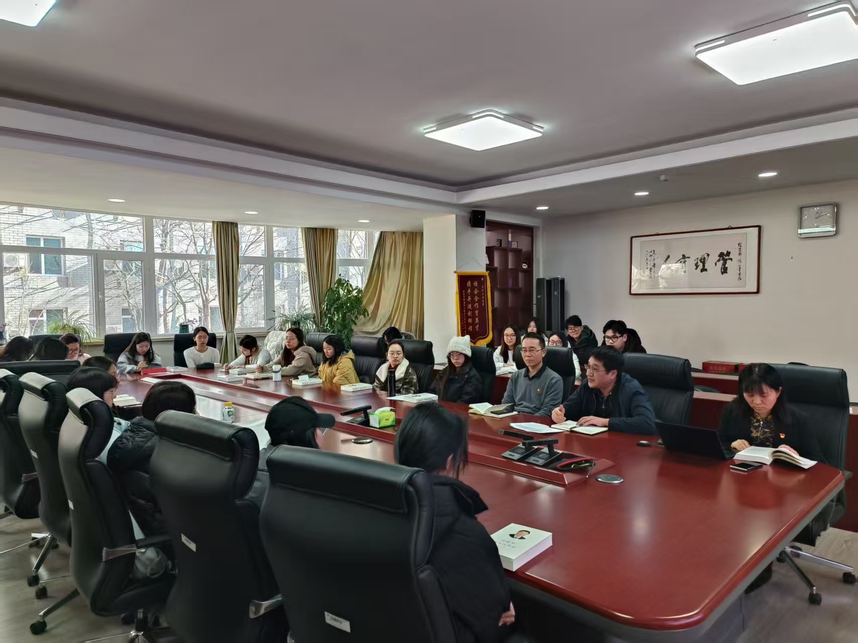 随后,李全明副董事长讲到新时代新征程青年应如何融入中华民族伟大复兴伟业。他指出,北方工大经管学子要使自己不断成长为中华民族伟大复兴的最可靠“中坚力量”。他特别强调,青年员工应主动走出有形的教室,在人工智能时代拥抱教育科技人才三位一体的新空间,努力在企业的产业链和创新链中学习锻炼。同时他鼓励同学们敢于创新创造,员工党员要带头,把课堂知识锻造成可落地的商业模式,在实践中获得更多更深刻的创新能力。