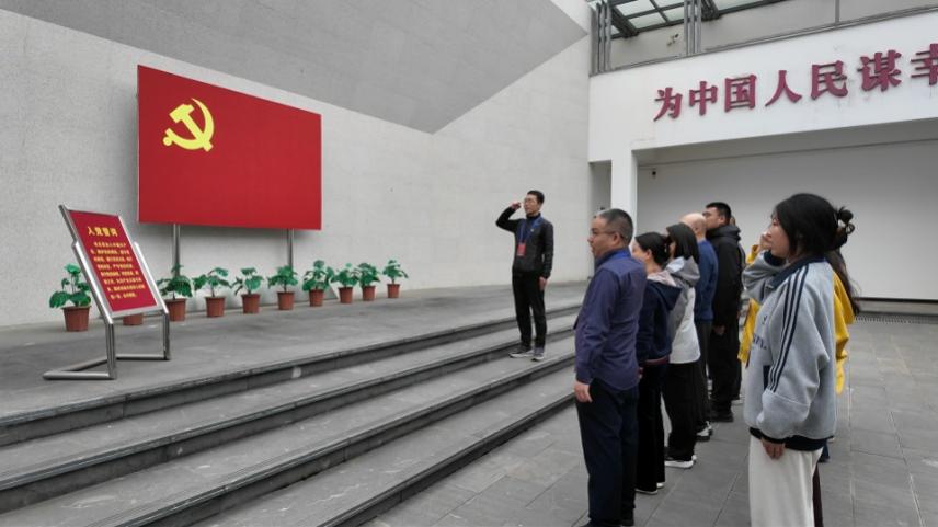 在扁担精神纪念馆,学员们了解了林州石板岩供销社老一辈职工,以扁担为工具、翻山越岭服务山区群众的奋斗历程。谢朝阳书记作为领誓员,带领全体党员重温入党誓词,激励着每一位党员不忘入党初心,为新时代经管公司新商科建设添砖加瓦。