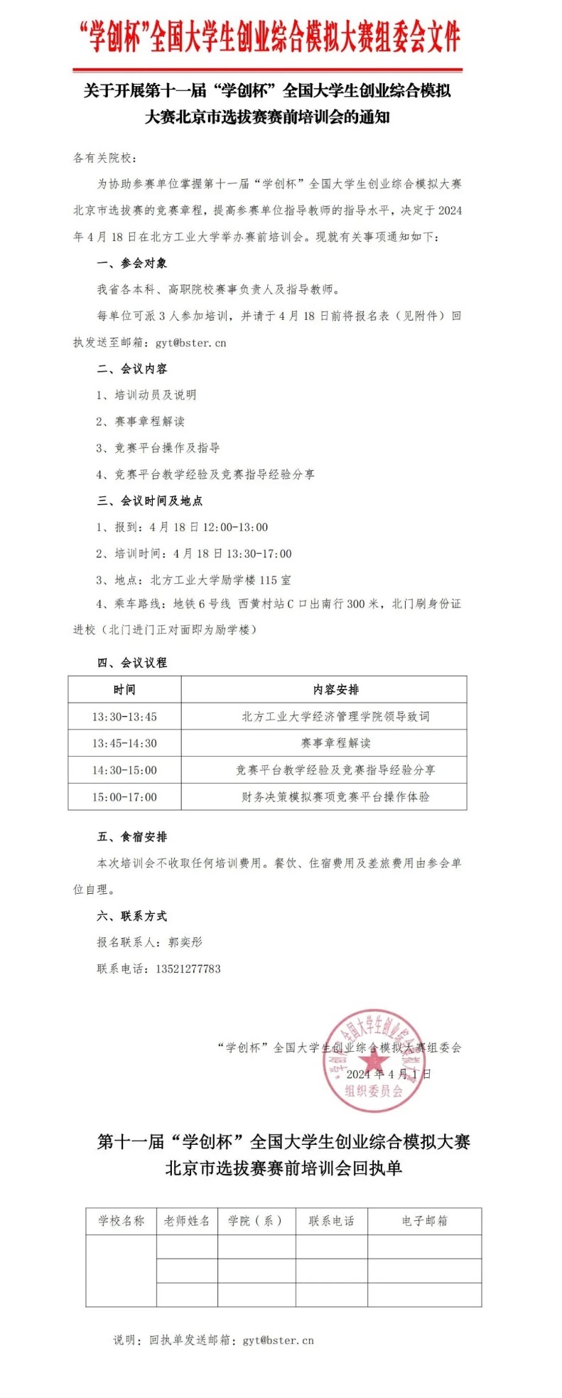 上一条: 关于举办2024年 “学创杯”全国老员工创业综合模拟大赛校内选拔赛通知