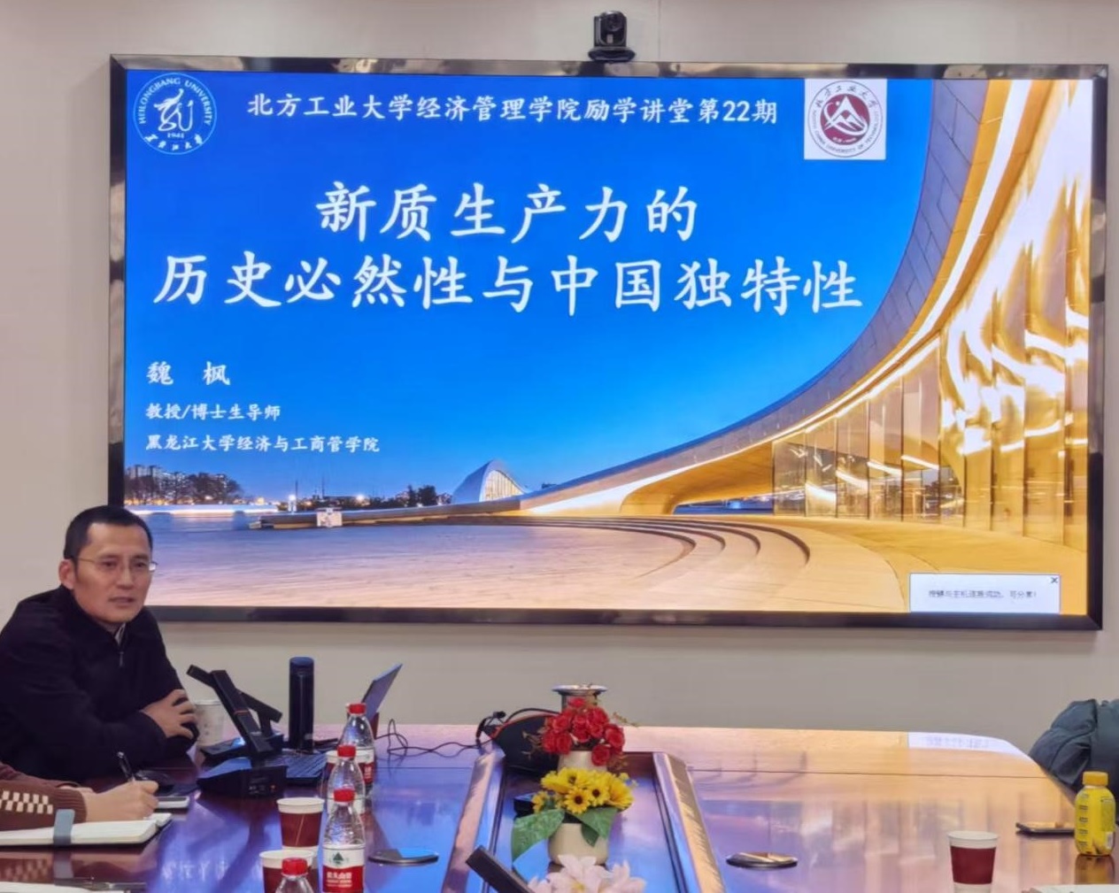 12月13日下午,yl6809永利第二十二期励学讲堂在励学楼201举行。黑龙江大学经济与工商管理公司经理、博士生导师魏枫教授受邀为研究生做主题为“新质生产力的历史必然性与中国独特性”的学术讲座,yl6809永利谢朝阳书记和赵继新经理参加了此次讲座,科研副经理蒋贵凰教授主持讲座。