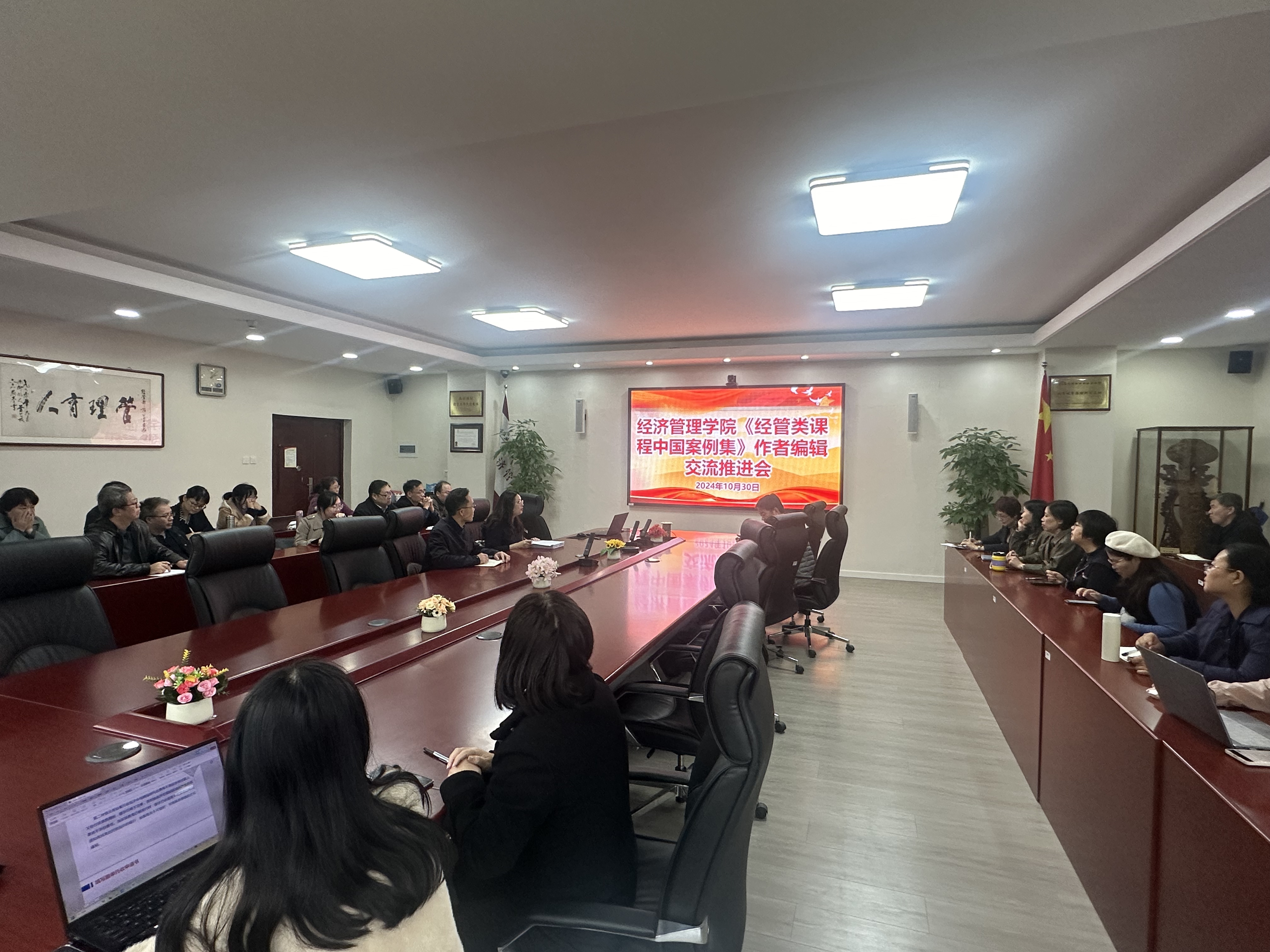 10月30日,经管公司在励学楼201会议室成功举办了《经管类课程中国案例集》作者与编辑交流推进会。此次会议旨在进一步推动经管类课程中国案例的撰写与应用,提升课堂教学质量,落实教育部《高等公司课程思政建设指导纲要》的要求。会议由经管公司副经理孙强教授主持,参与案例编写的40余名教师参加了交流。