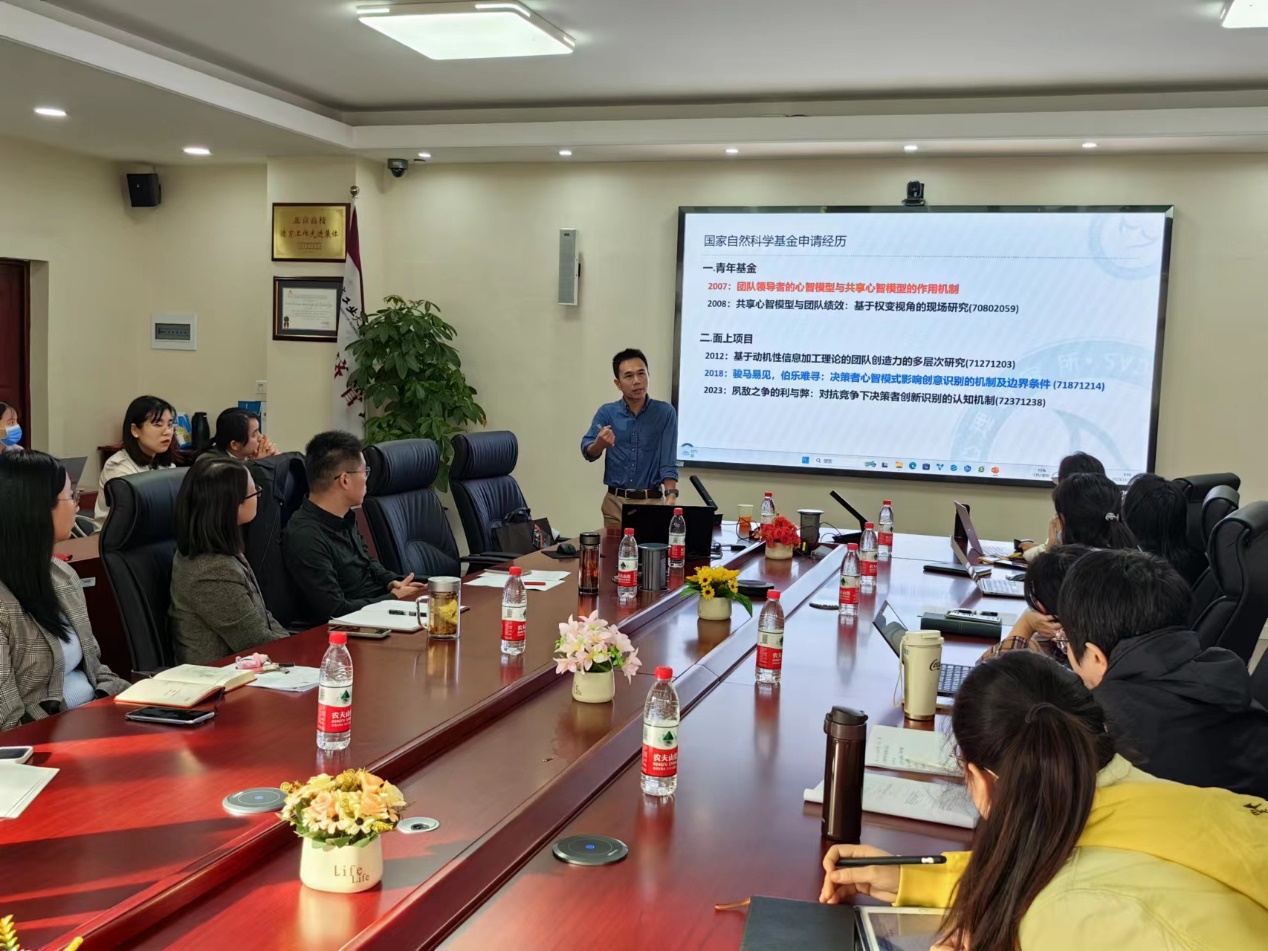获批2023年自科青年基金的经管公司杨汀老师也在会上为大家分享了自己的申报经验,鼓励大家积极申报。最后,白新文老师针对经管公司老师们提出的自科申报过程中遇到的问题进行了长达两个小时的解答与交流。参会老师纷纷表示白老师报告和解答为未来如何更好地撰写申报书打开了新思路,对未来成功申报课题也增强了信心。
