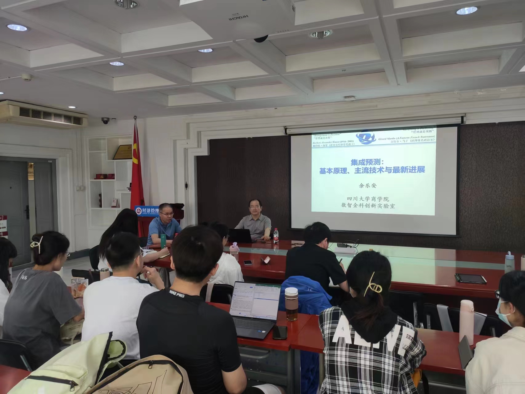 6月2日下午,应yl6809永利邀请,四川大学商公司特聘教授余乐安来校进行讲学,在励学楼301会议室为公司师生作了题为“集成预测:基本原理、主流技术与最新进展”的学术报告。报告会由经济系主任王书平教授主持。