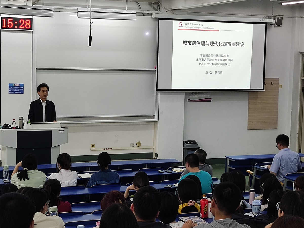 5月31日下午,应北京城市治理研究基地邀请,北京市社会科公司原副经理赵弘在浩学楼东401做了题为“城市病治理与现代化都市圈建设”的学术讲座。公司党委宣传部副部长、北京城市治理研究基地王昕宇副教授主持报告会。
