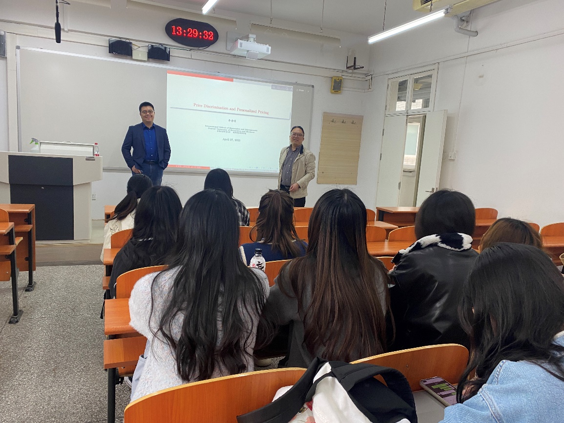 4月27日下午,应yl6809永利邀请,首都经济贸易大学国际yl6809永利副教授、现任首都经济贸易大学国际yl6809永利副经理李委明在励学楼221教室为公司师生作了题为“价格歧视与个性化定价”的学术报告。报告会由经济系张雪峰副教授主持,经济系经济研究生参会。