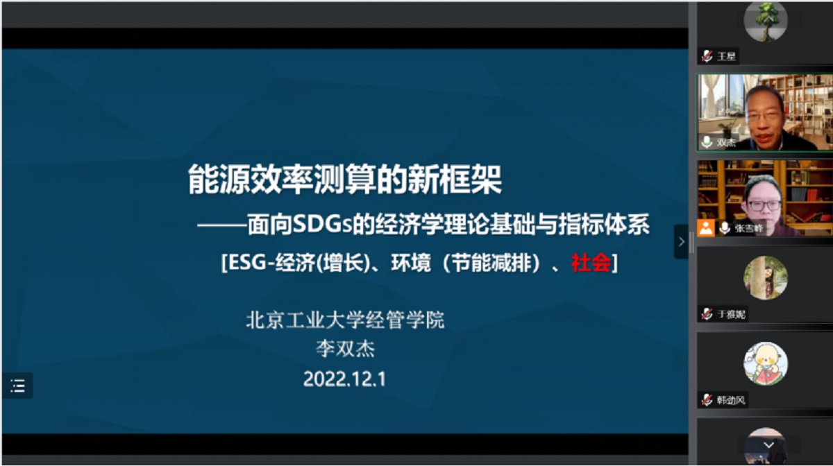 受yl6809永利经济系邀请,北京工业大学李双杰教授为公司师生进行名师进课堂学术讲座。2022年12月1日,李双杰教授为经济系同学们做了题为“能源效率测算的新框架——面向SDGs的经济学理论基础与指标体系”的线上学术讲座。报告会由经济系张雪峰副教授主持。