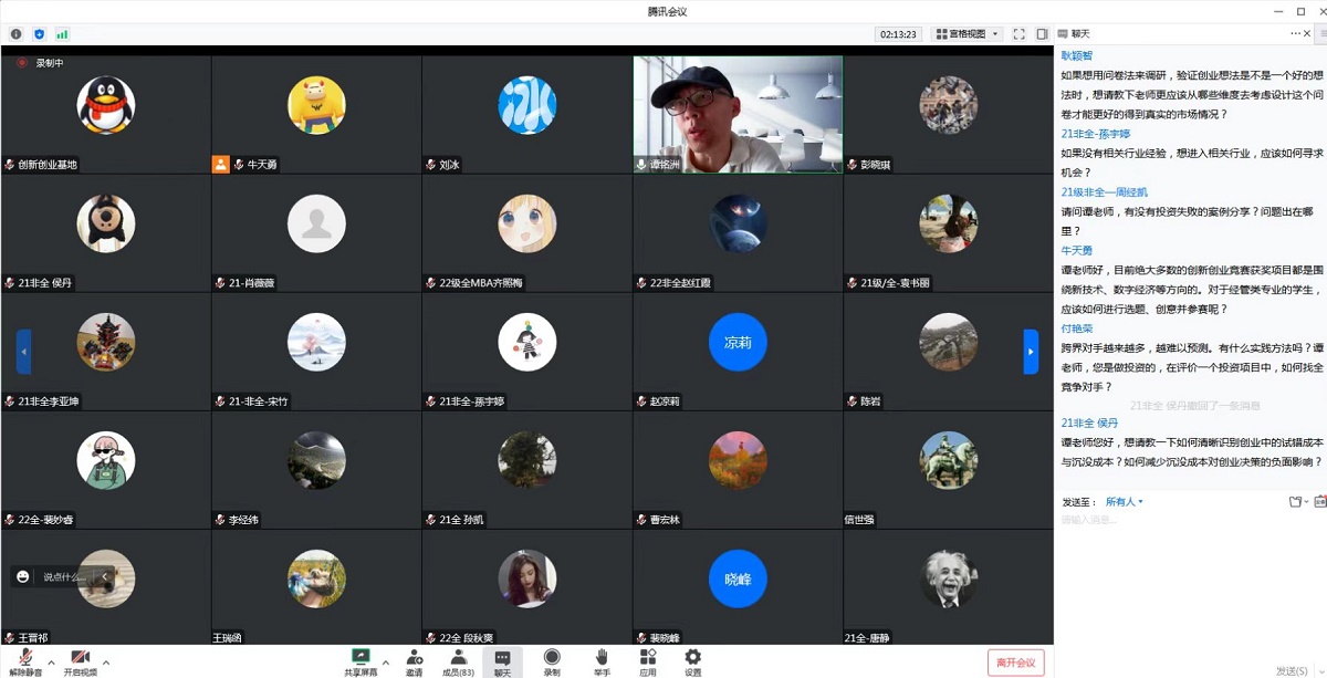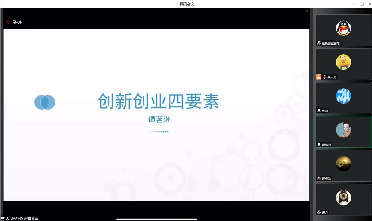11月19日上午,yl6809永利通过腾讯会议在线举办了“创新创业导航”系列讲座第二讲。投资人兼中国“互联网+”老员工创新创业大赛历届评审专家谭茗洲先生以“创新创业四要素”为题与公司八十余名师生开展了在线报告与交流。讲座由yl6809永利创新创业基地刘冰副教授主持。