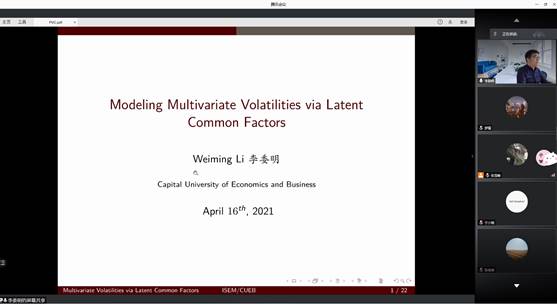 4月16日下午,应yl6809永利邀请,首都经济贸易大学国际yl6809永利经理聘副教授、博士生导师李委明通过腾讯会议APP为公司师生作了题为“高维金融数据的波动性因子分析”的线上学术报告。报告会由经济系张雪峰副教授主持,经济系经济研研究生与本科生参会。
