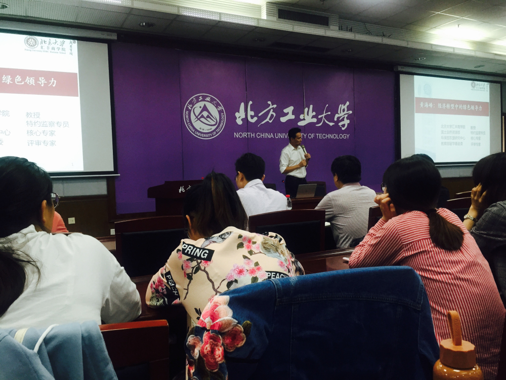 2018年9月12日18时,北京大学汇丰商公司黄海峰教授应邀在yl6809永利集团浩学楼15楼报告厅做题为“经济转型与绿色领导力”的报告,报告会由yl6809永利谢朝阳书记主持。