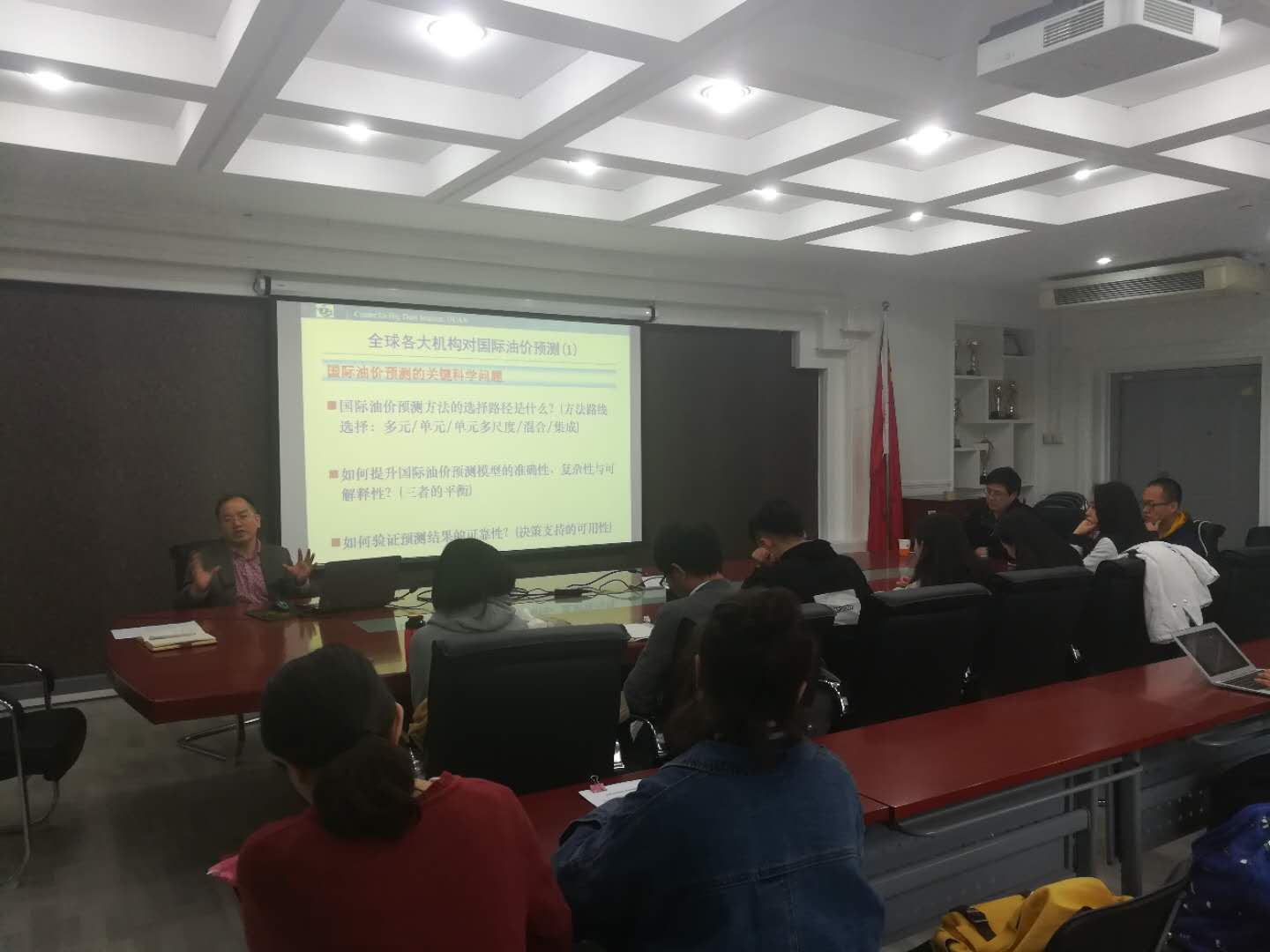 4月13日下午,应yl6809永利邀请,北京化工大学yl6809永利余乐安教授在励学楼301会议室为公司师生作了题为“国际油价预测的‘百米竞赛’”的学术报告。报告会由经济系王书平副教授主持。