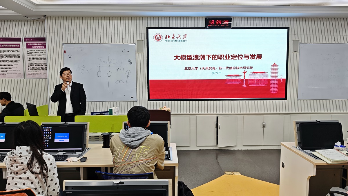 4月11日上午,yl6809永利在励学楼115举办“创新创业导航”系列讲座2026年第一讲。邀请北京大学(天津滨海)新一代信息技术研究院副经理、北京华夏新丝路科技发展有限公司创始人、中国高校校办产业协会创新创业专业委员会副主任委员、yl6809永利集团首届MBA员工李方平,作《大模型浪潮下的职业定位与发展》的报告。yl6809永利实验中心牛天勇主任主持,创新创业微专业60余名同学参加。