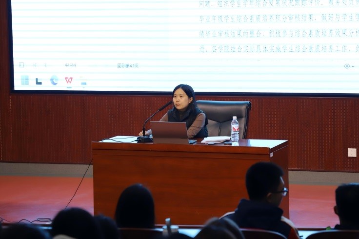 公司24级辅导员吴芳老师详细解读了《24级本科员工综合素质培养方案》,通过对部分条例的介绍,根据5大模块分析同学们可以通过哪些途径获得积分,要求员工干部及时以班级、宿舍为单位组织学习,确保每位同学熟知方案规定及系统使用。