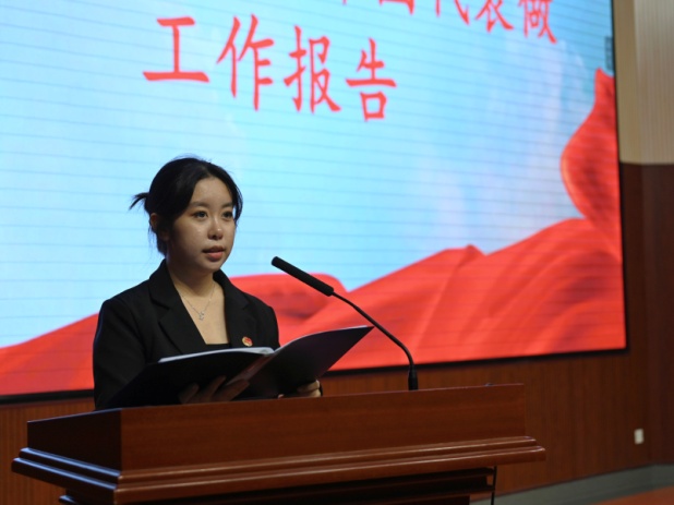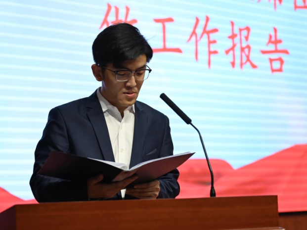 孟伊美同学和孙传锋同学分别做工作报告。孟伊美同学从组织引领、学风建设、文体活动和社会实践四个方面进行汇报,回顾过去一年经管公司团委员工会所取得的成绩,思考和展望未来发展方向。孙传锋同学从学术交流、服务师生、实践活动等方面进行总结,表示研究生会将在学习中成长,实践中进步。两位同学代表员工会做出承诺,经管团学将会齐心协力,以全心全意服务员工为宗旨,以脚踏实地践行使命为核心,全力以赴完成各项工作,更好地服务同学,助力公司发展。
