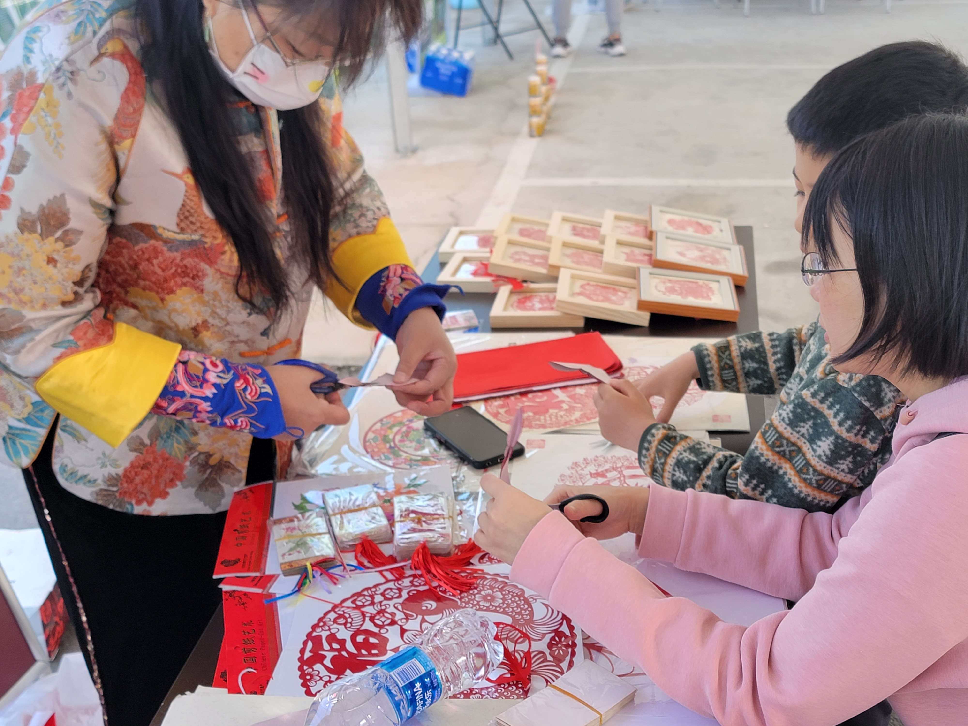 剪纸技艺作为中华传统非遗技艺,融入了人民群众对生活美好的祝愿。在石景山区德瑞凯通足球公园,志愿者们在石景山区第四代非遗剪纸文化传承人杨秀英老师的带领下,耐心细致教游客们剪纸。