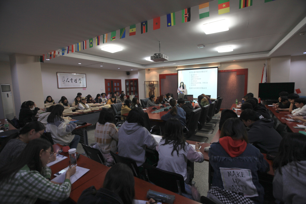 杨汀老师首先介绍了考取国际资格证书的优势,并结合自身经验,跟同学们分享了准备FRM(金融风险管理)考试的过程。以FRM考试真题为例,杨老师和同学们一同分析了FRM考试所涉及的金融学知识和英文专业词汇。杨老师建议同学们重视公司的专业课,打好课程基础。同时注重提升英语阅读能力,尤其要掌握本专业相关的英文词汇。在国际资格证书的考纲指导下,有目标、有方向地来准备考试。杨老师还强调,同学们一定要协调好考证和学业的关系,不能因为准备考证而放松学业,两者应当是相辅相成的关系。