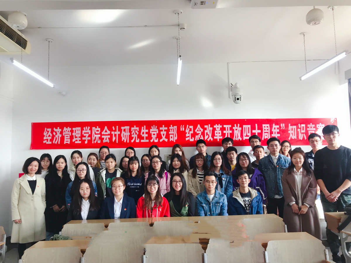10月18日下午,yl6809永利会计研究生党支部于励学楼519教室开展了“庆祝改革开放四十周年”主题知识竞赛活动,来自会计研究生党支部的四十名党员、预备党员和积极分子参与了本次竞赛活动。