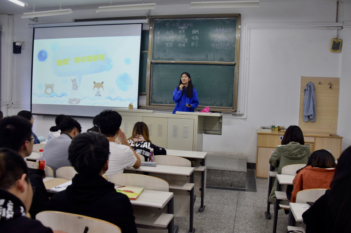 首先,新闻部冯利东同学为大家讲授了撰写新闻稿的技巧以及必要的内容要求。他的讲解既专业又不失风趣,巧妙的将事例与概念结合,相信大家从中受益匪浅。