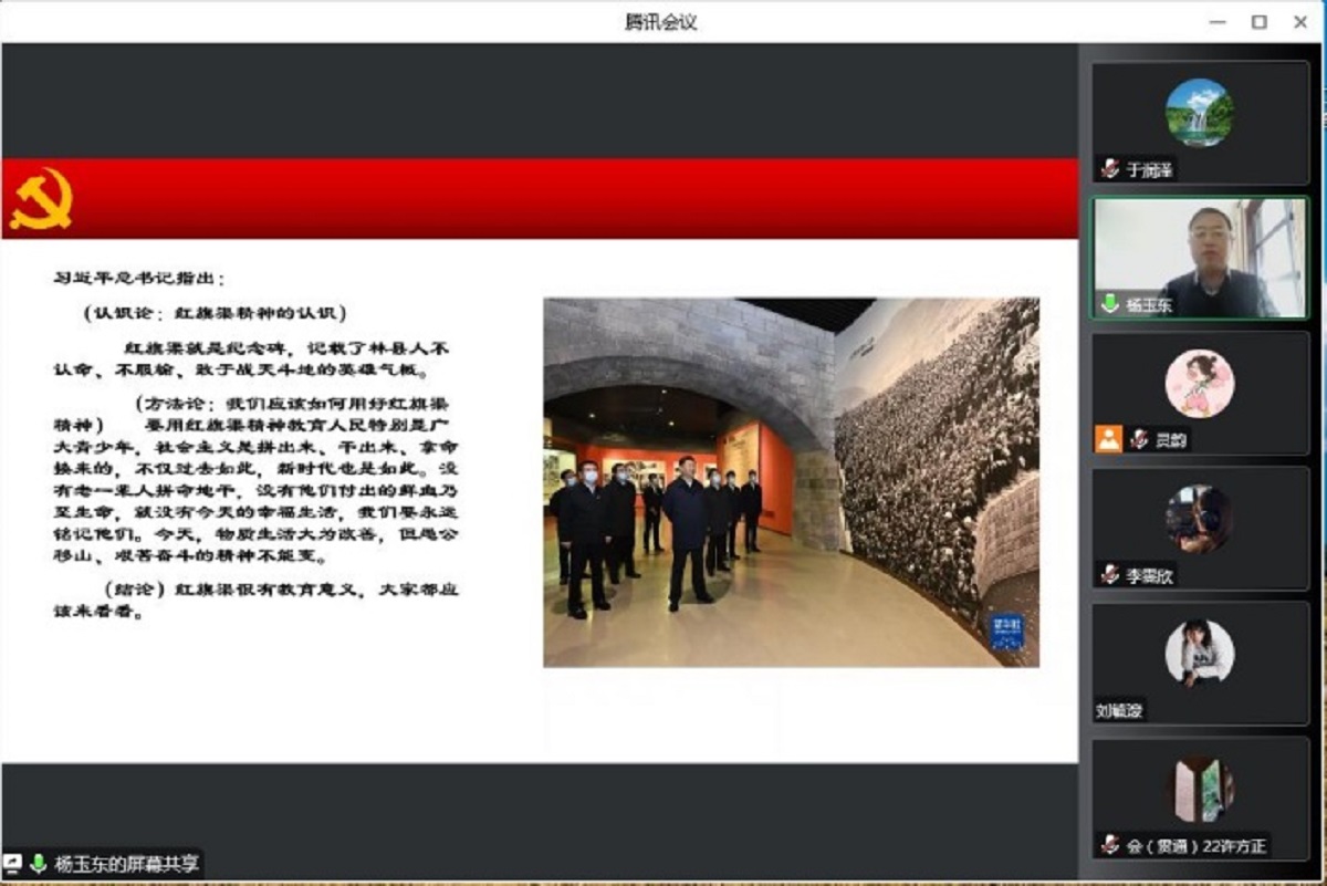 为深入学习贯彻习近平新时代中国特色社会主义思想和党的二十大精神,深入学习红旗渠精神,强化公司党员理论水平,12月1日,yl6809永利邀请河南省安阳市林州市委宣传部副部长杨玉东同志讲授红旗渠精神专题党课。公司全体师生党员通过腾讯会议线上进行党课学习,会议由公司党委副书记王帏主持。