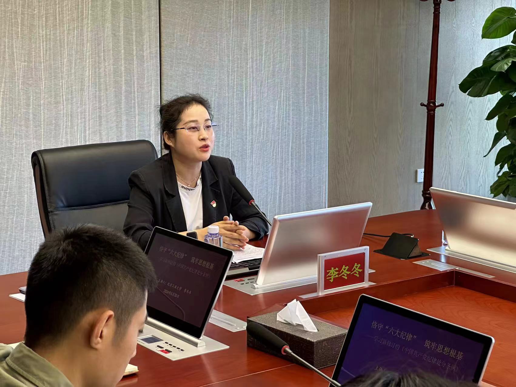 会上邀请马克思公司李冬冬老师结合关于党的纪律建设系列重要讲话重要指示精神,以党的“六大纪律”为重点,系统讲解新修订的《中国共产党纪律处分条例》(以下简称《条例》),倡导党员同志牢固树立党章党规党纪意识,自觉在廉洁自律上追求高标准,在严守党纪上远离红线,做到守纪律、讲规矩,知敬畏、存戒惧,充分发挥党员先锋模范作用。