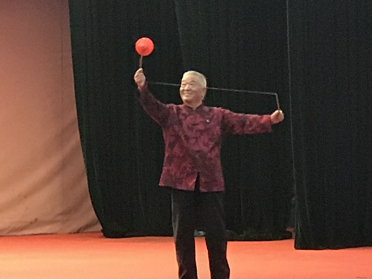 讲座结束后,李连元老师和他的徒弟——区级空竹技艺传承人高宝山老师,联袂表演了精彩的抖空竹技艺,现场同学不时发出赞叹的声音,掌声不断。