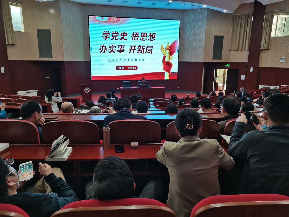 按照公司党史学习教育安排部署,4月25日下午,公司党委书记王伟宾结合个人学习心得,以“学党史 悟思想 办实事 开新局”为题,在文化会堂为全院教师上了一堂意义深刻的党课。
