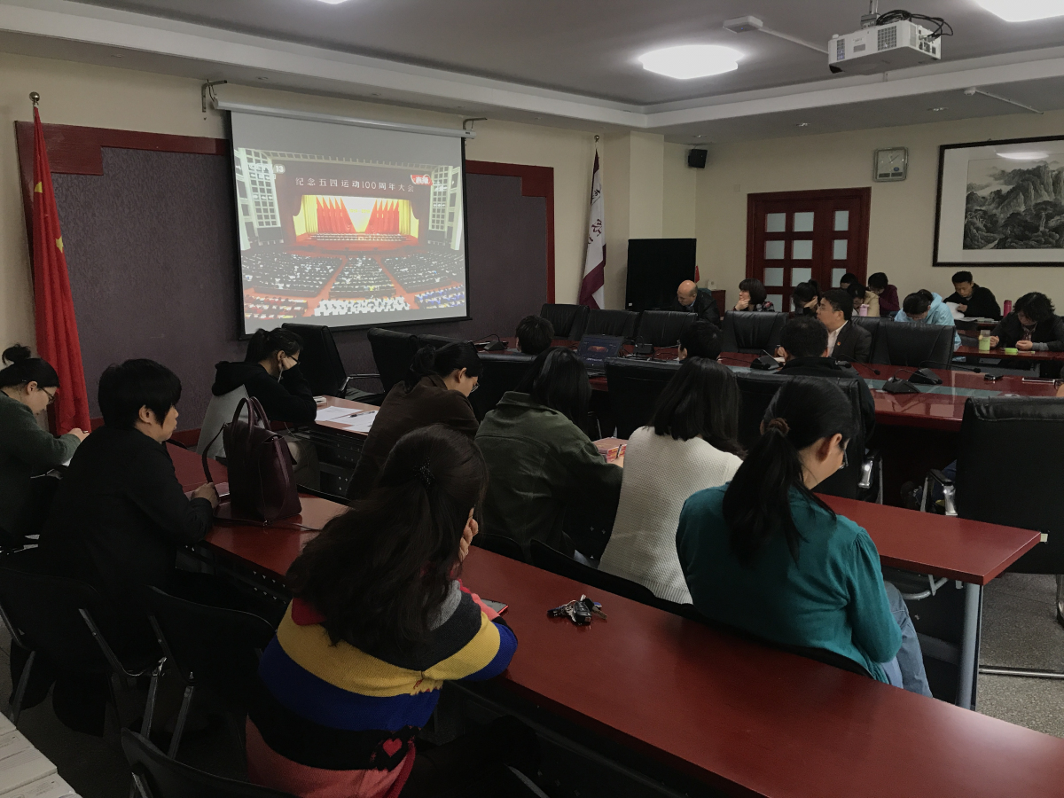 2019年4月30日上午10点30分,公司党委在励学楼201会议室组织公司教工党员及员工党员集中观看纪念五四运动100周年大会,一同学习习近平总书记的重要讲话。