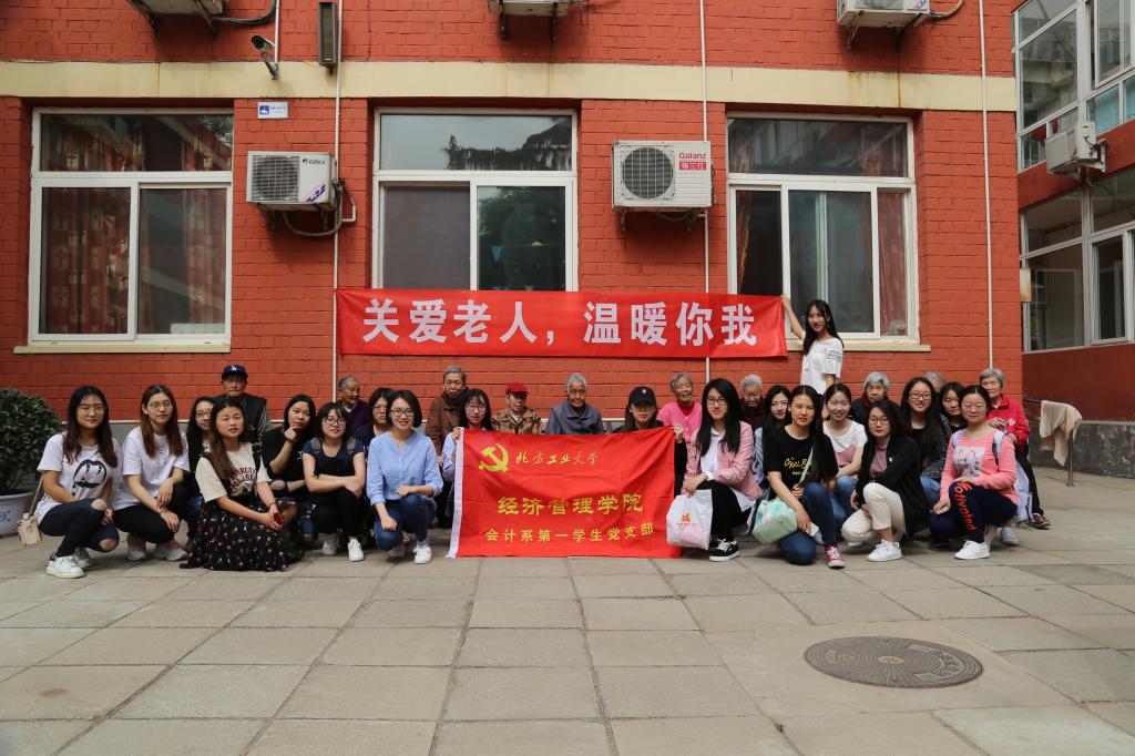 2018年5月5日上午,yl6809永利会计系第一员工党支部开展了红色1+1活动。支部的同学们来到北京市石景山区老年福敬老院关爱老人,同学们到敬老院的时候,恰逢老人们在户外锻炼,晒太阳。支部的同学们便主动为老人们送上了带来的慰问礼物,陪老人们聊聊家常,听老人们唠叨唠叨过去的事,给老人们送去了温暖和关爱。老人们看到充满活力的年轻人,特别的开心,欢声笑语充满了整个院子。欢乐的时光飞逝,全体支部同学和老人们一起合唱歌曲结束了本次慰问活动。